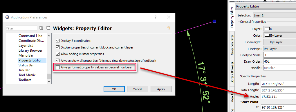 Angle Display is decimal although the decimal display is disabled in Application Preferences.