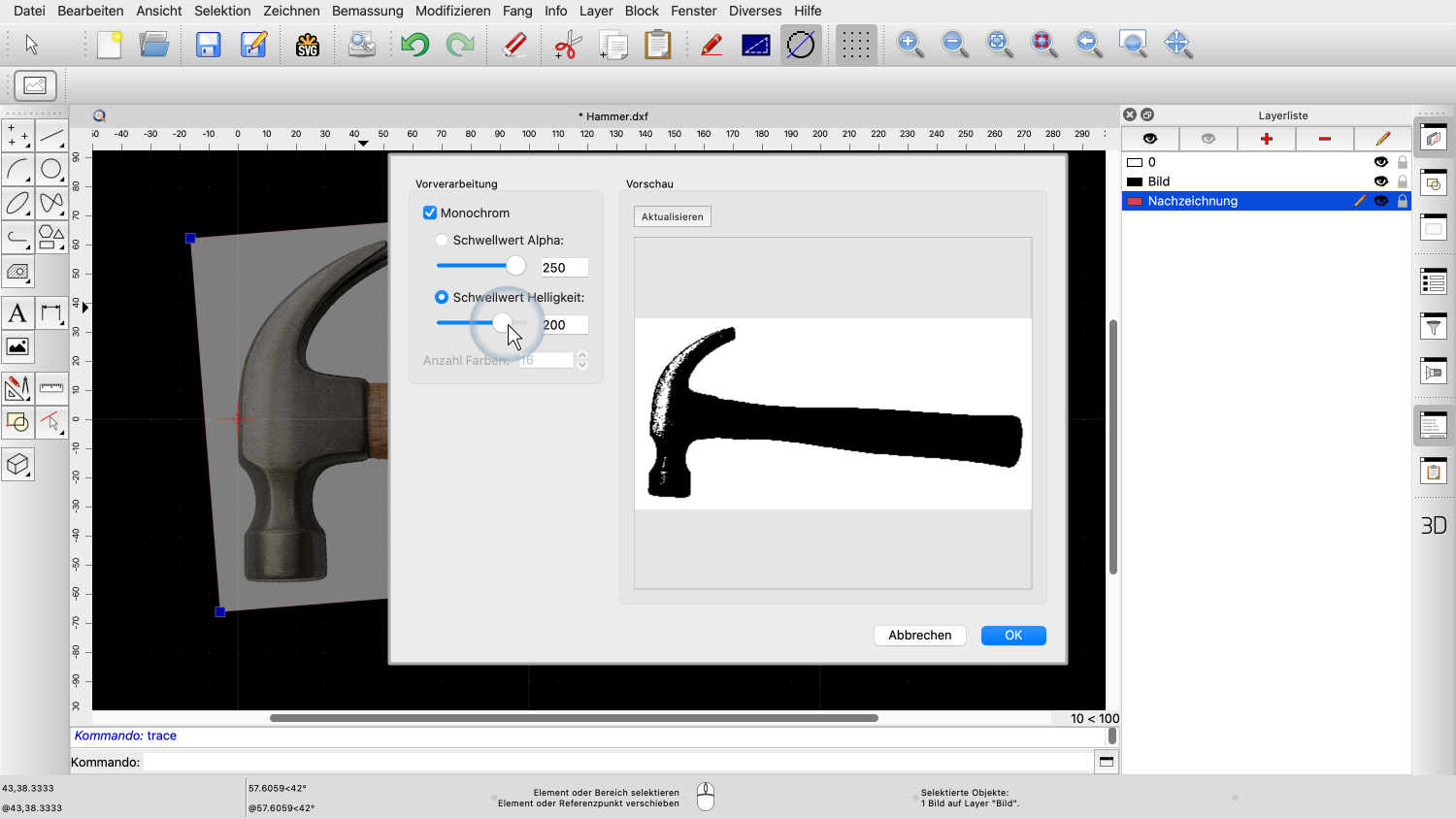 Das Nachzeichnen von Bildern kann nützlich sein, um technische Zeichnungen aus einem Scan oder Foto zu rekonstruieren oder um Skizzen zu vektorisieren.