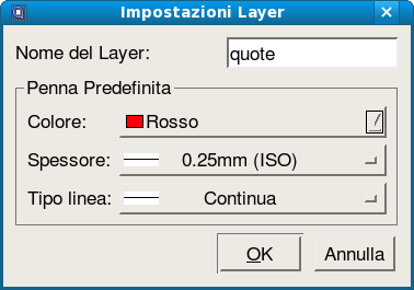Con questo comando potete aprire la stessa finestra utilizzata per creare nuovi livelli (Figura 16). Utilizzate questo comando per modificare il nome gli attributi di livello. Il nome del livello "0" non può mai essere modificato.