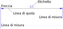 Questo capitolo tratta l'argomento della quotatura dei disegni in QCad. La Figura 36 illustra la notazione utilizzata in riferimento alle quote.