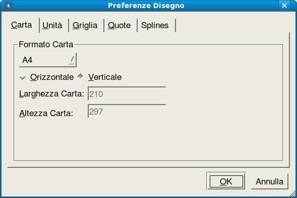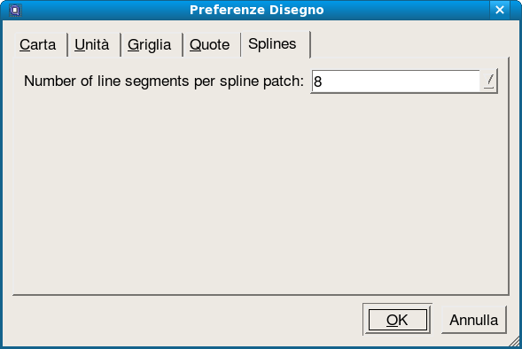 QCad interpola le curve spline con piccoli segmenti rettilinei. In questa scheda potete regolare la precisione di questa interpolazione. Un valore più basso implica che la qualità della spline è bassa, ma la visualizzazione sarà più rapida e leggera. Un valore più elevato implica la visualizzazione delle curve con una qualità più elevata, con possibile riduzione delle prestazioni per quanto riguarda la visualizzazione (Figura 73).