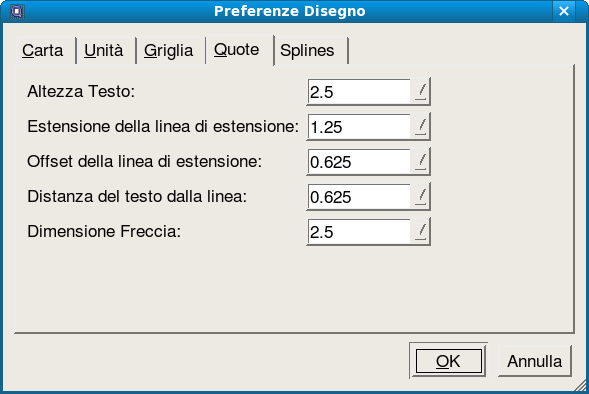 Le preferenze di disegno impostate dall'apposita finestra di dialogo hanno effetto soltanto sul disegno corrente. Queste preferenze riguardano le unità di disegno, il formato del foglio, le preferenze per la quotatura e altre impostazioni specifiche del disegno.