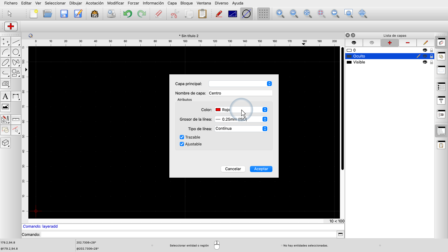Las capas son fundamentales en CAD y las utilizaremos en todos nuestros dibujos.