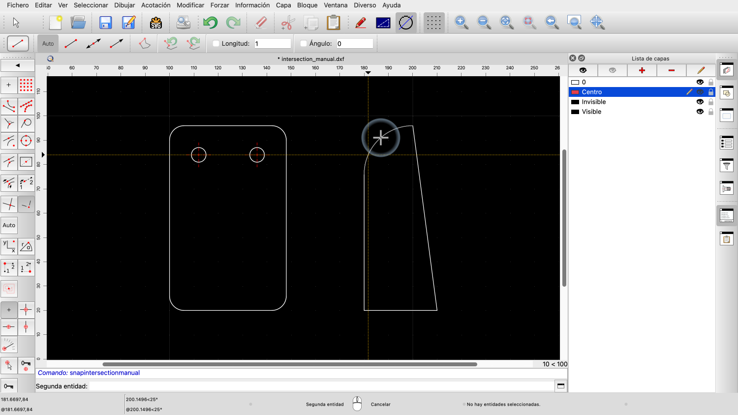 En este modo, podemos elegir manualmente dos entidades para encontrar el punto de intersección.