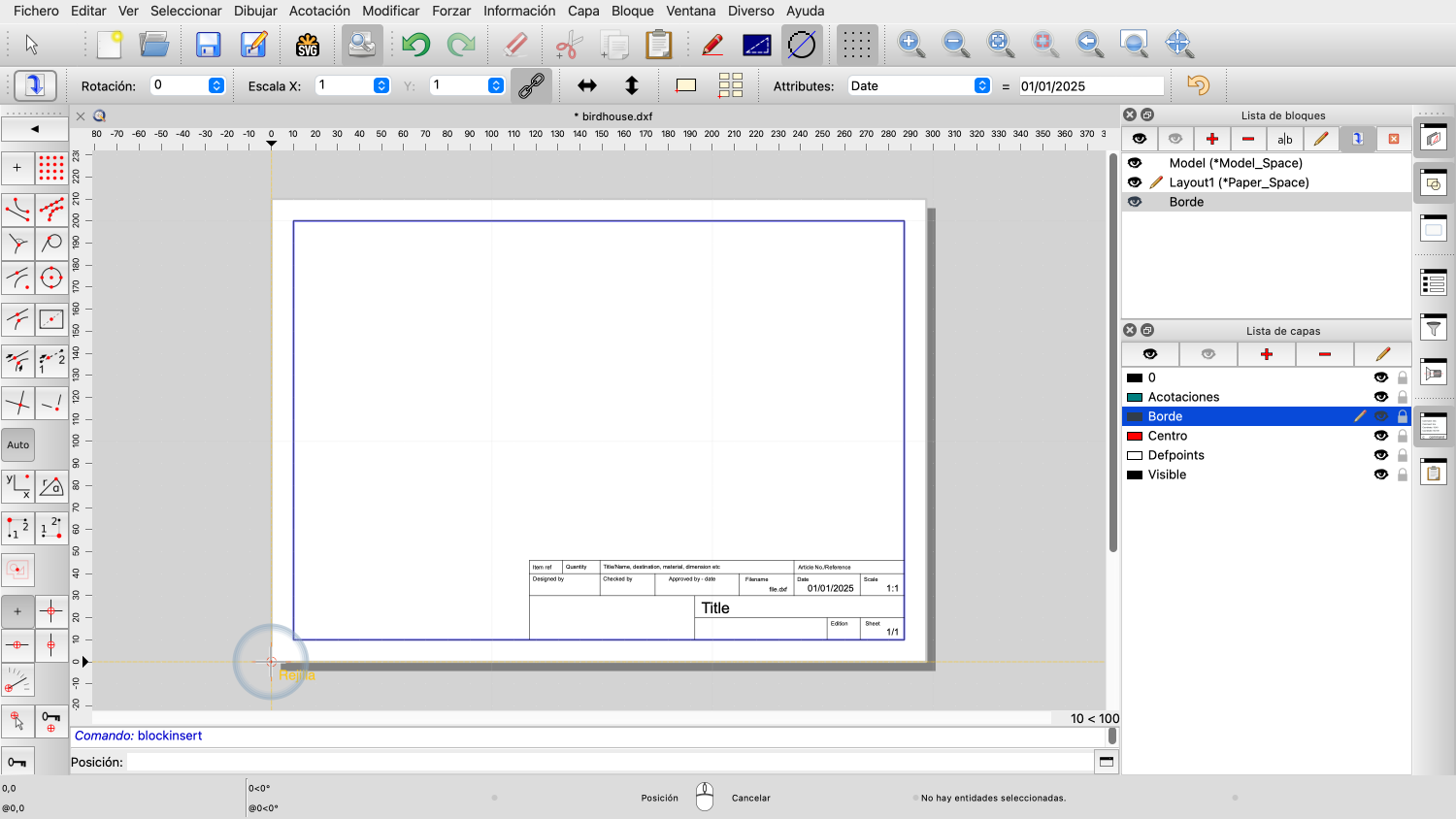 A continuación, insertamos el borde del dibujo que ya hemos preparado en un bloque aparte llamado "Borde".