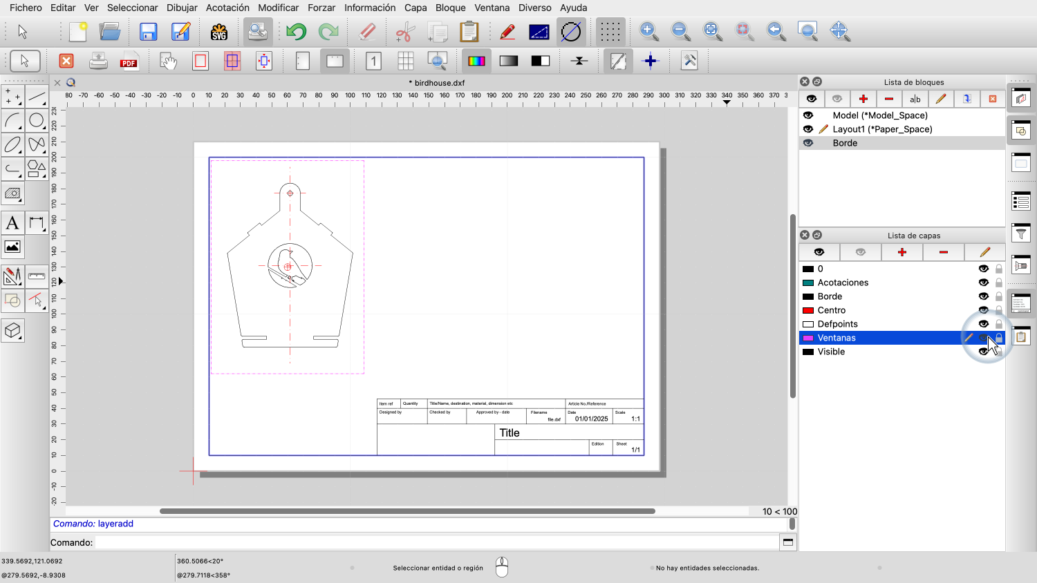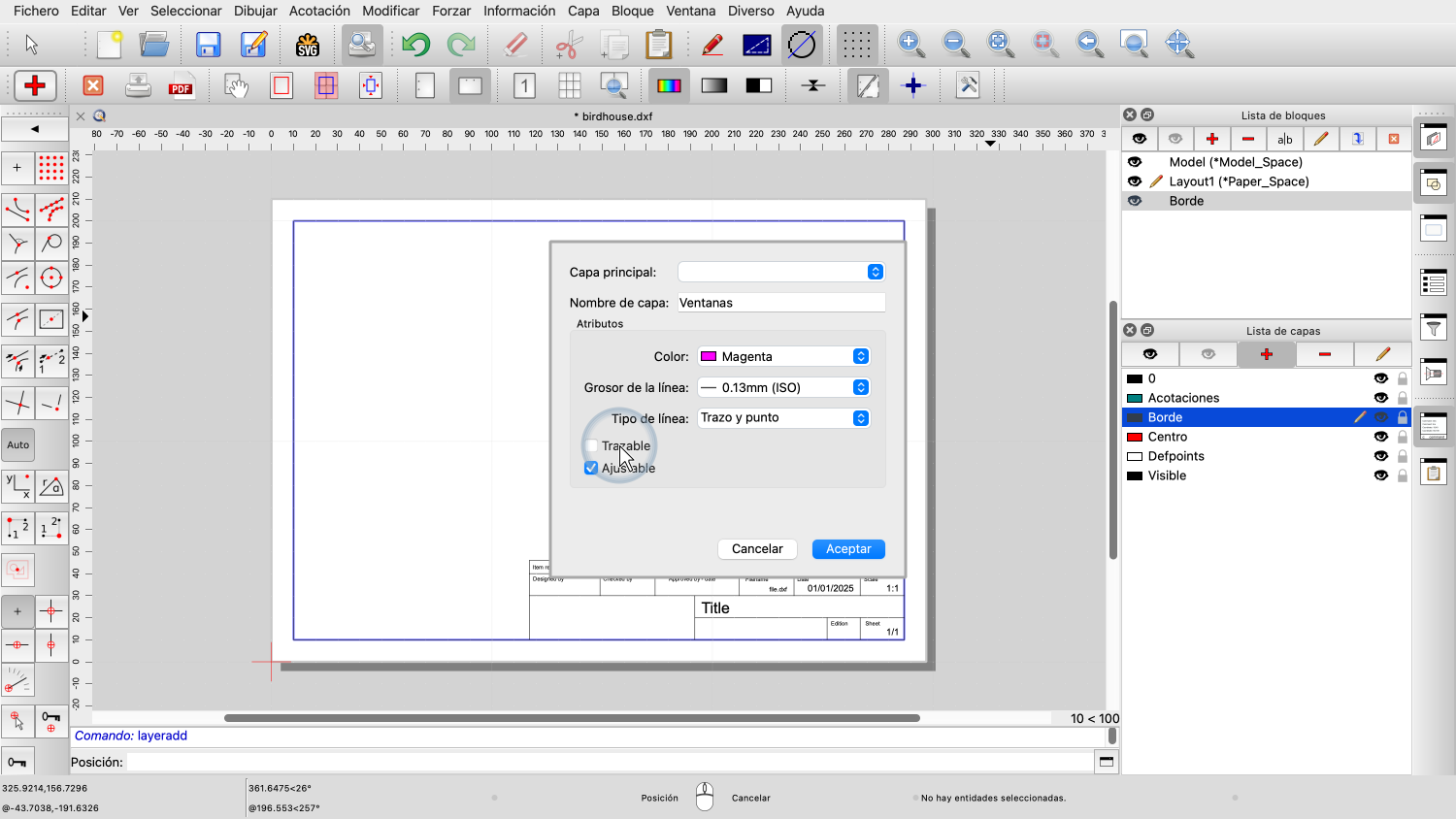 También queremos añadir un borde y un bloque de título con información sobre el dibujo.