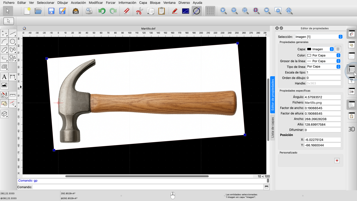 Hemos insertado esta imagen de un martillo y la hemos alineado al tamaño y ángulo deseados.