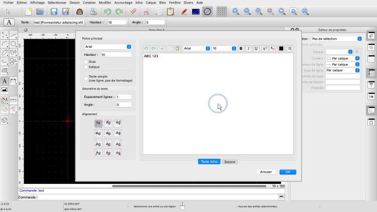 Pour créer une entité texte, nous utilisons l'outil texte de QCAD.