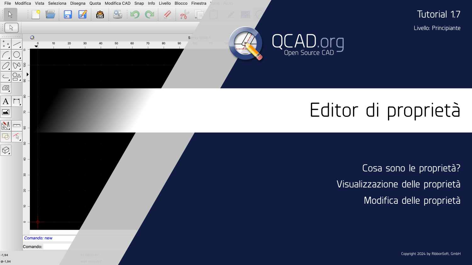 Questo tutorial è una breve introduzione all'editor di proprietà di QCAD.