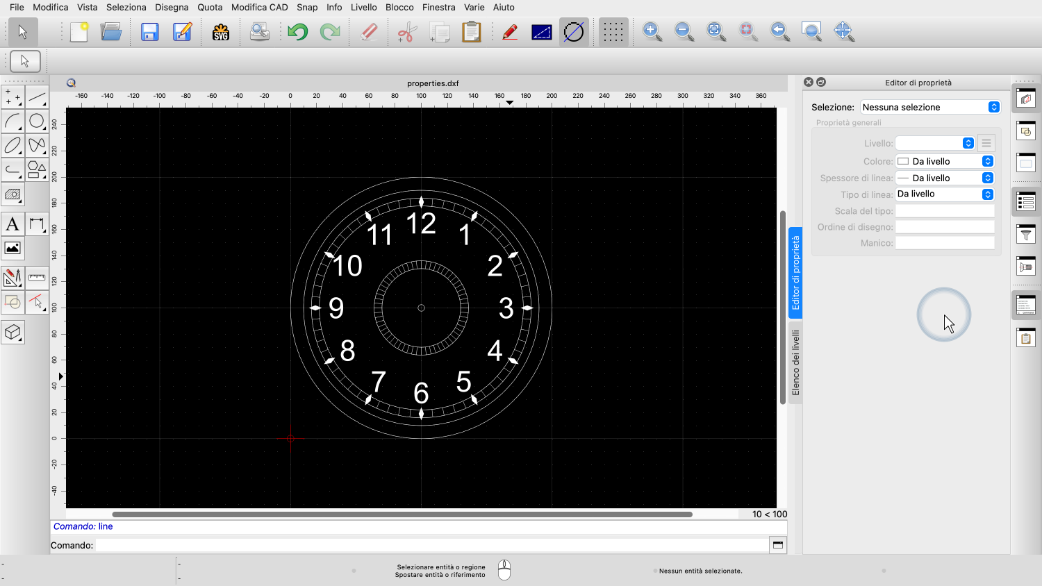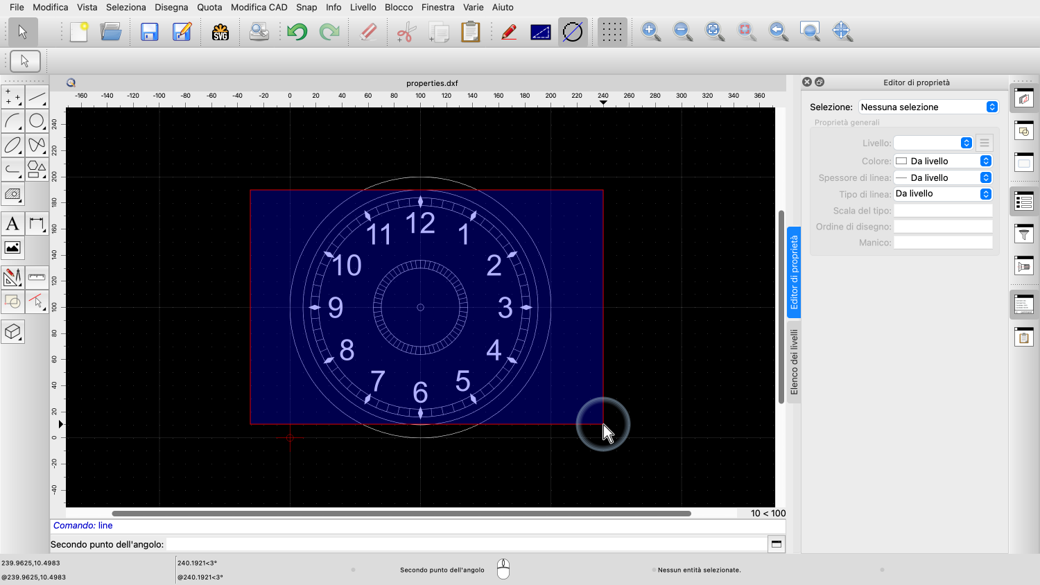 Prima di poter utilizzare l'editor delle proprietà, il nostro disegno deve avere almeno un'entità selezionata.
