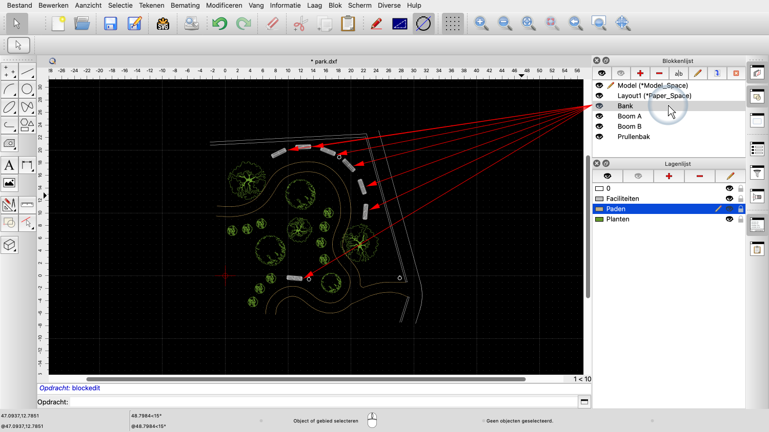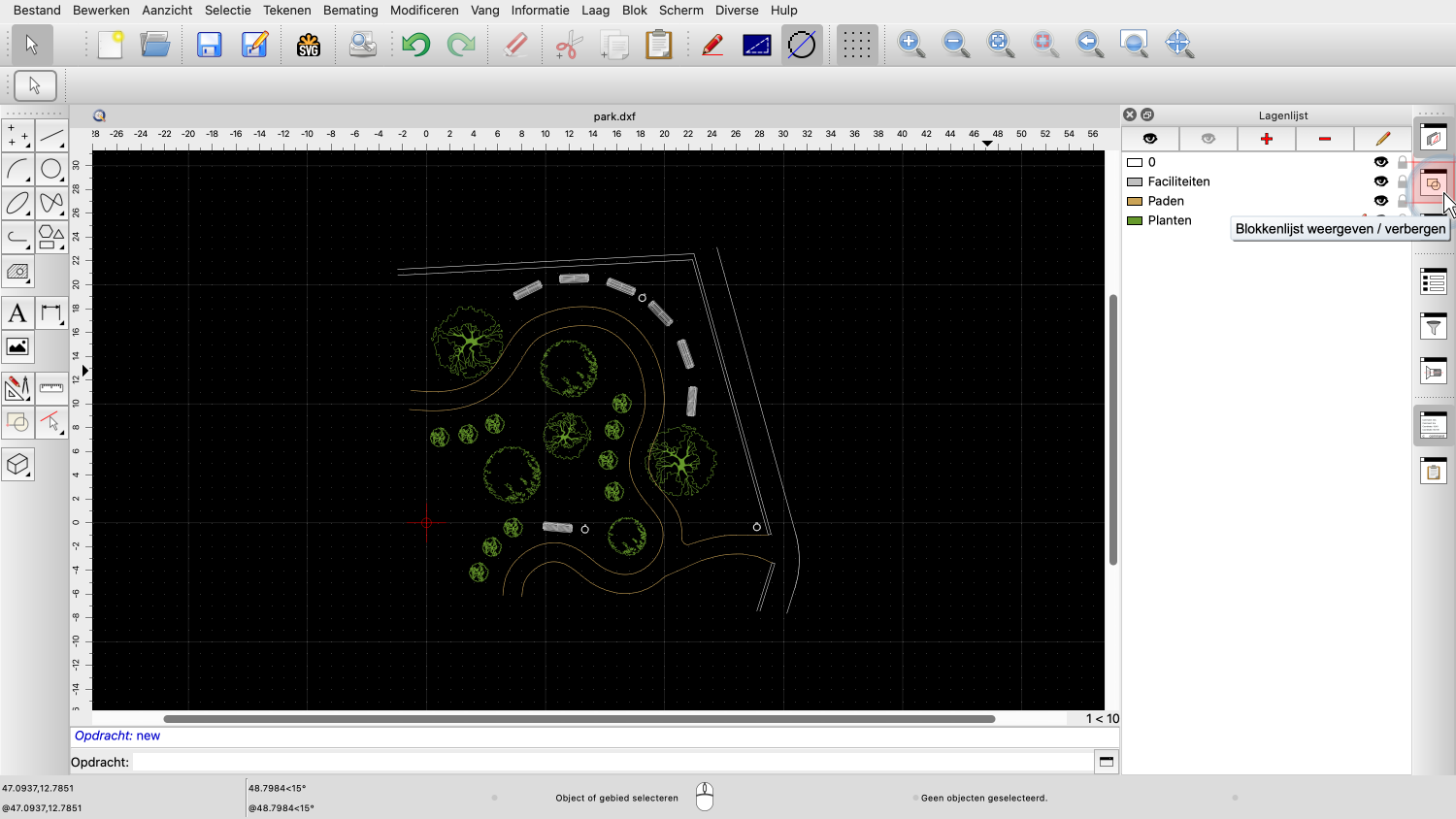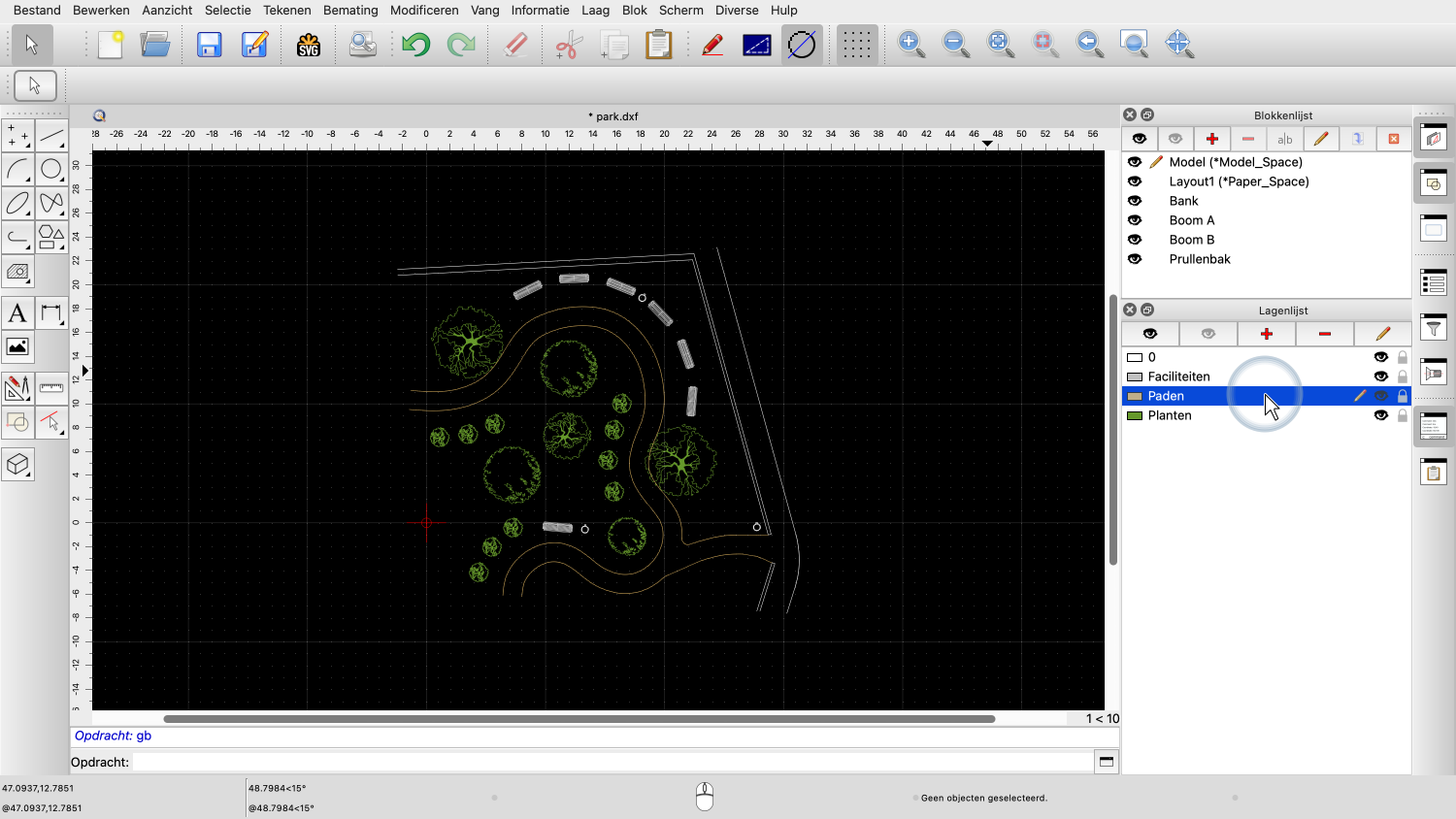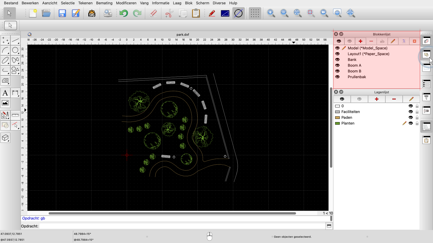 Voorbeeldtekening: park.dxf