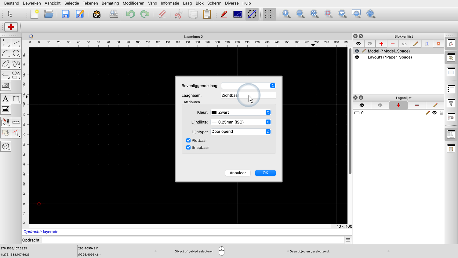 De lagen die we maken zullen beschikbaar zijn voor alle blokken in de tekening.