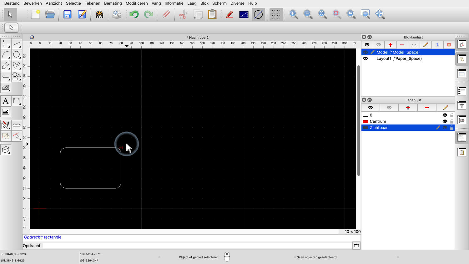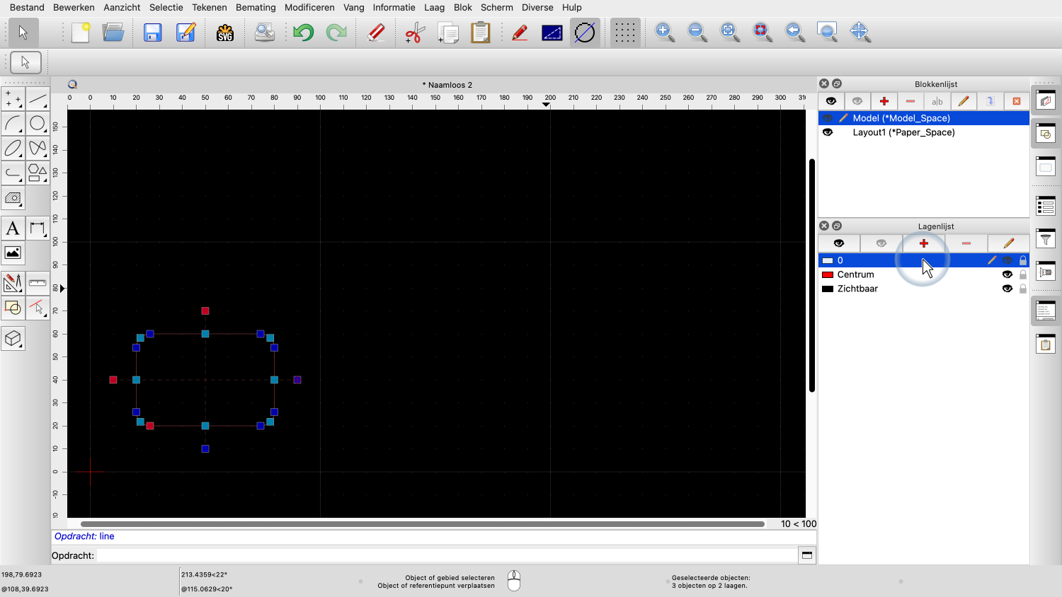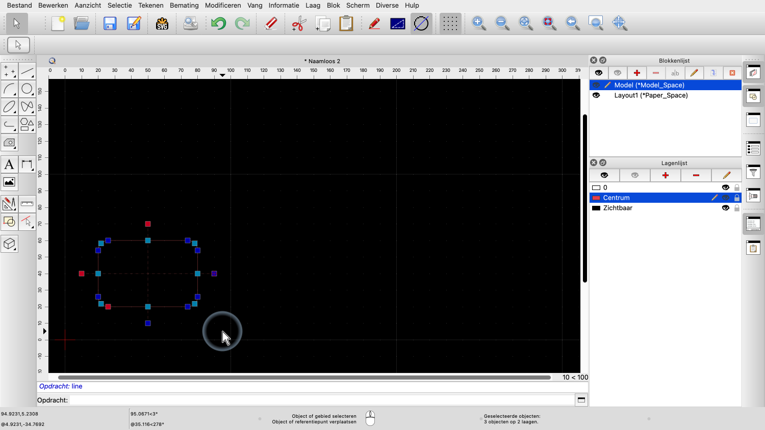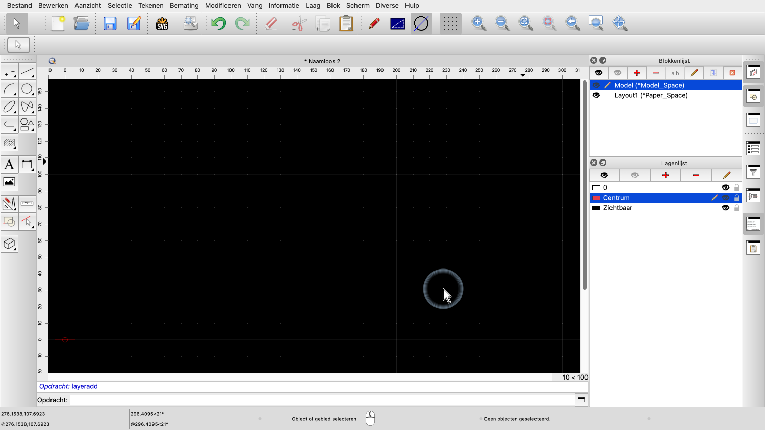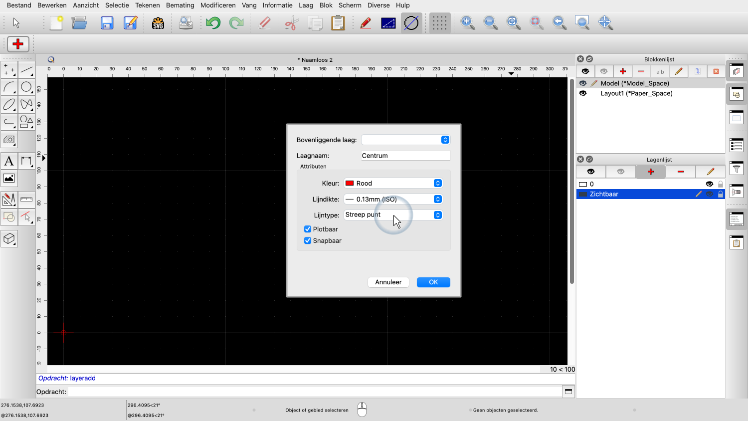 Omdat we niet willen dat die blokreferentie op laag "Centrum" staat, schakelen we over naar laag "0".
