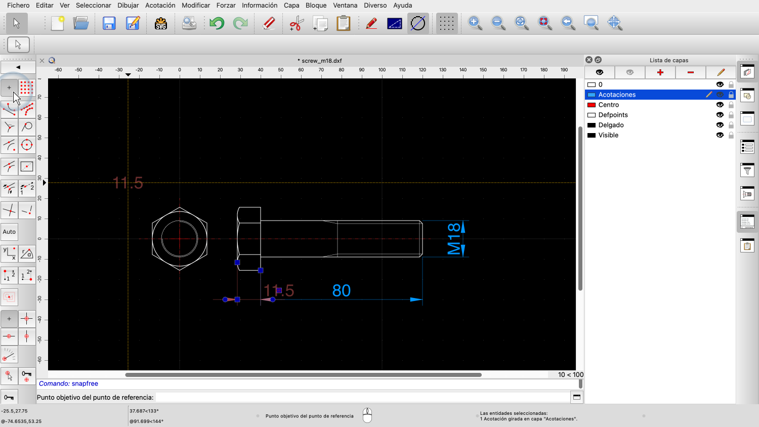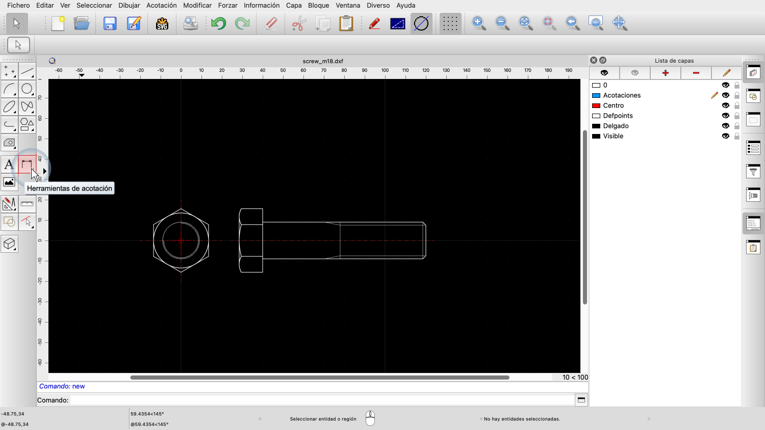 Este tutorial de QCAD presenta algunas herramientas básicas de acotación.