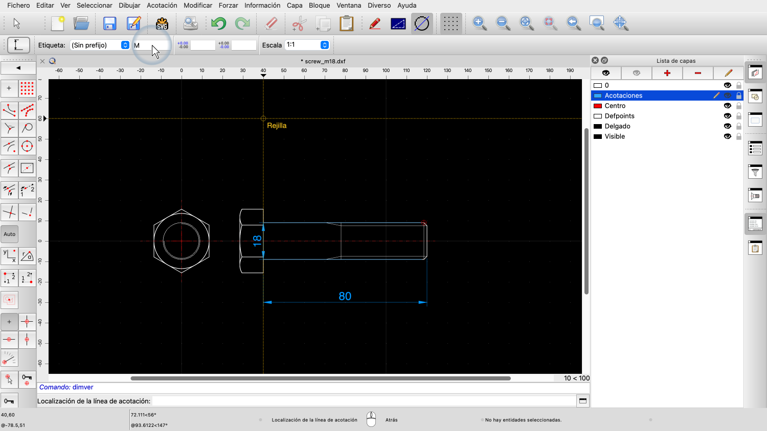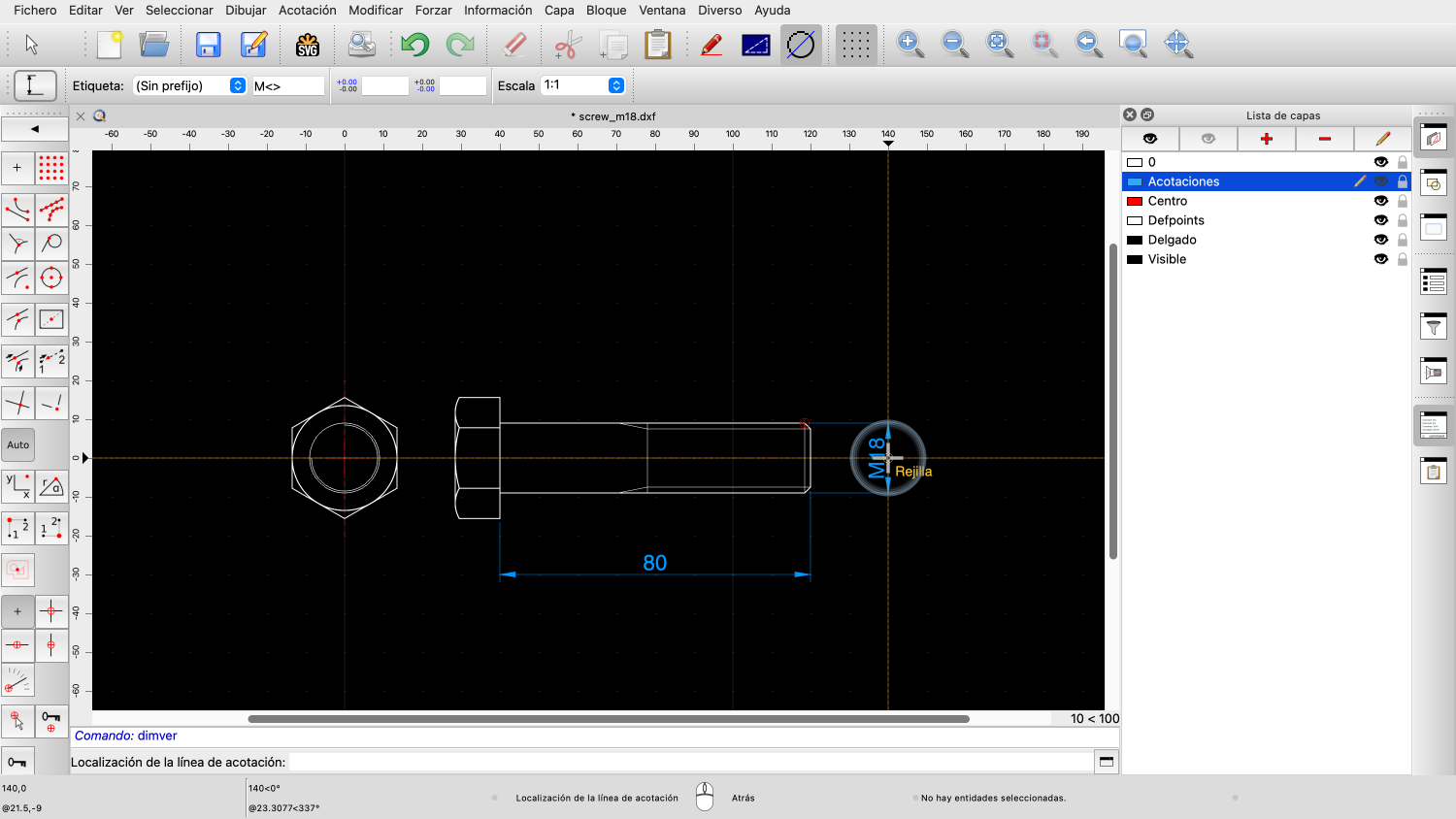 Aquí, utilizamos la capa "Acotaciones" para todas nuestras entidades de acotación.
