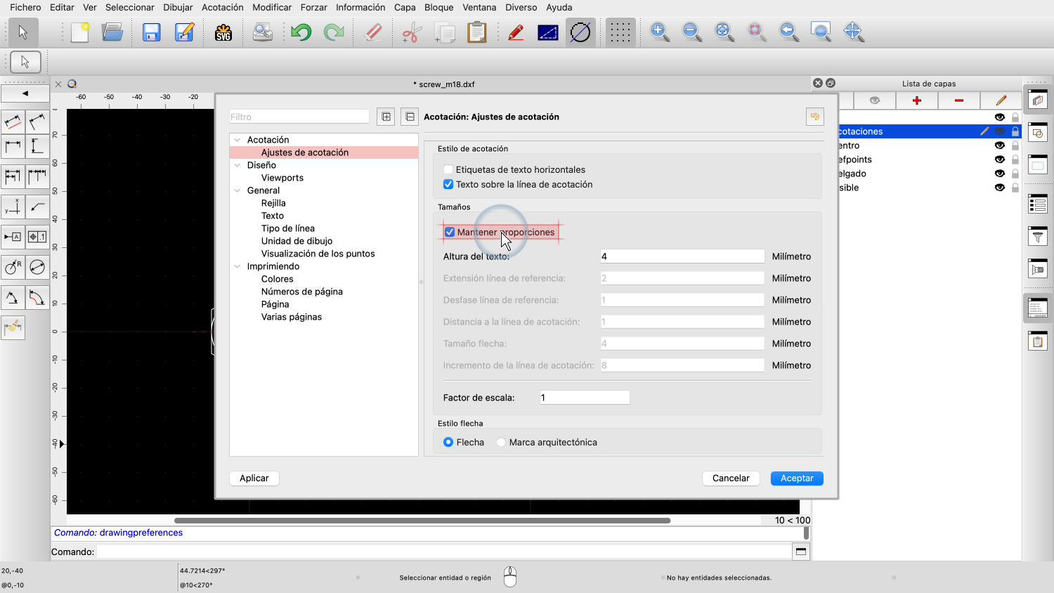 Creamos todas las acotaciones en una capa independiente para controlar fácilmente su aspecto.