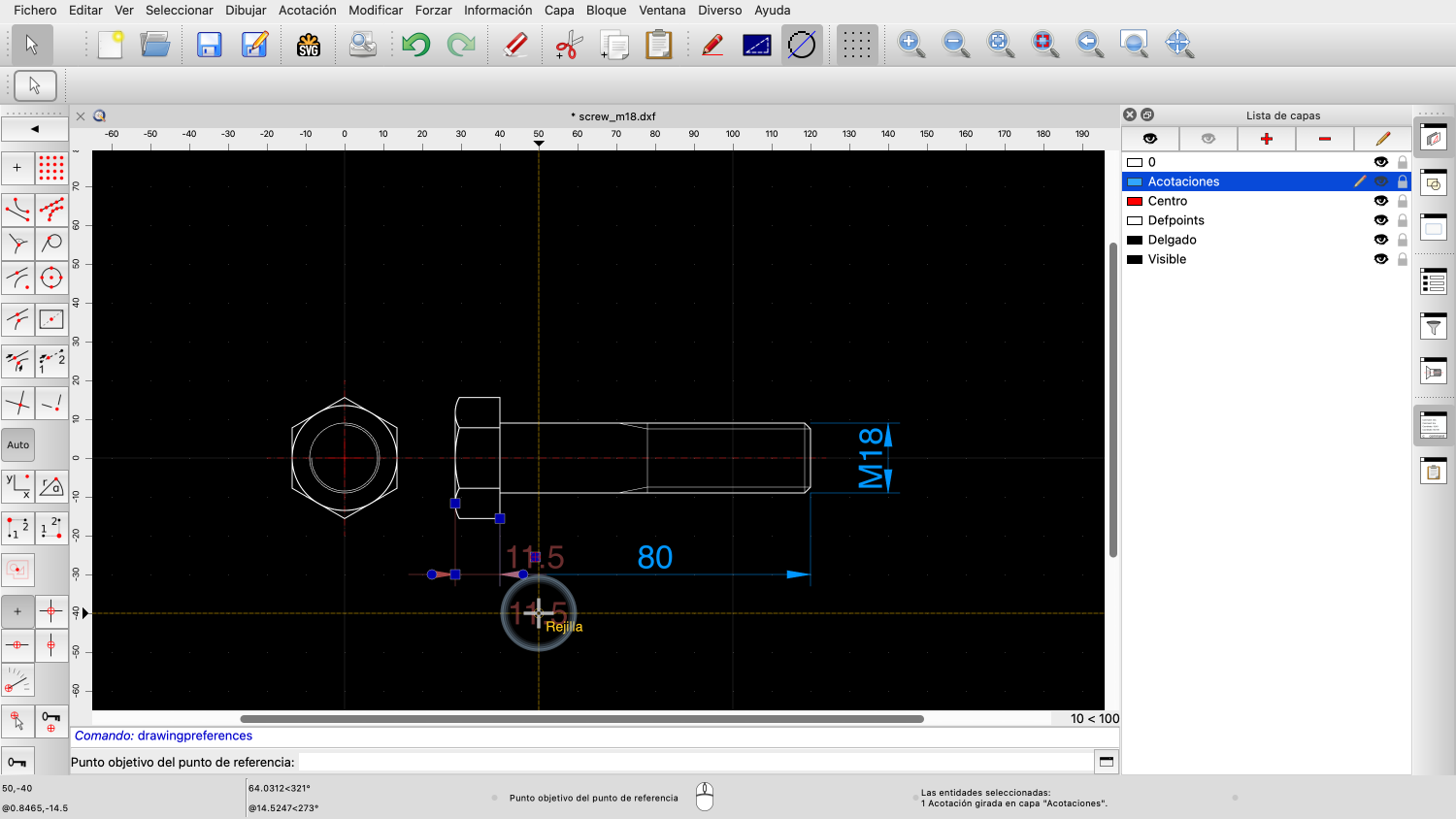 Ahora la acotación siempre mostrará "M18", aunque cambie la medida real.