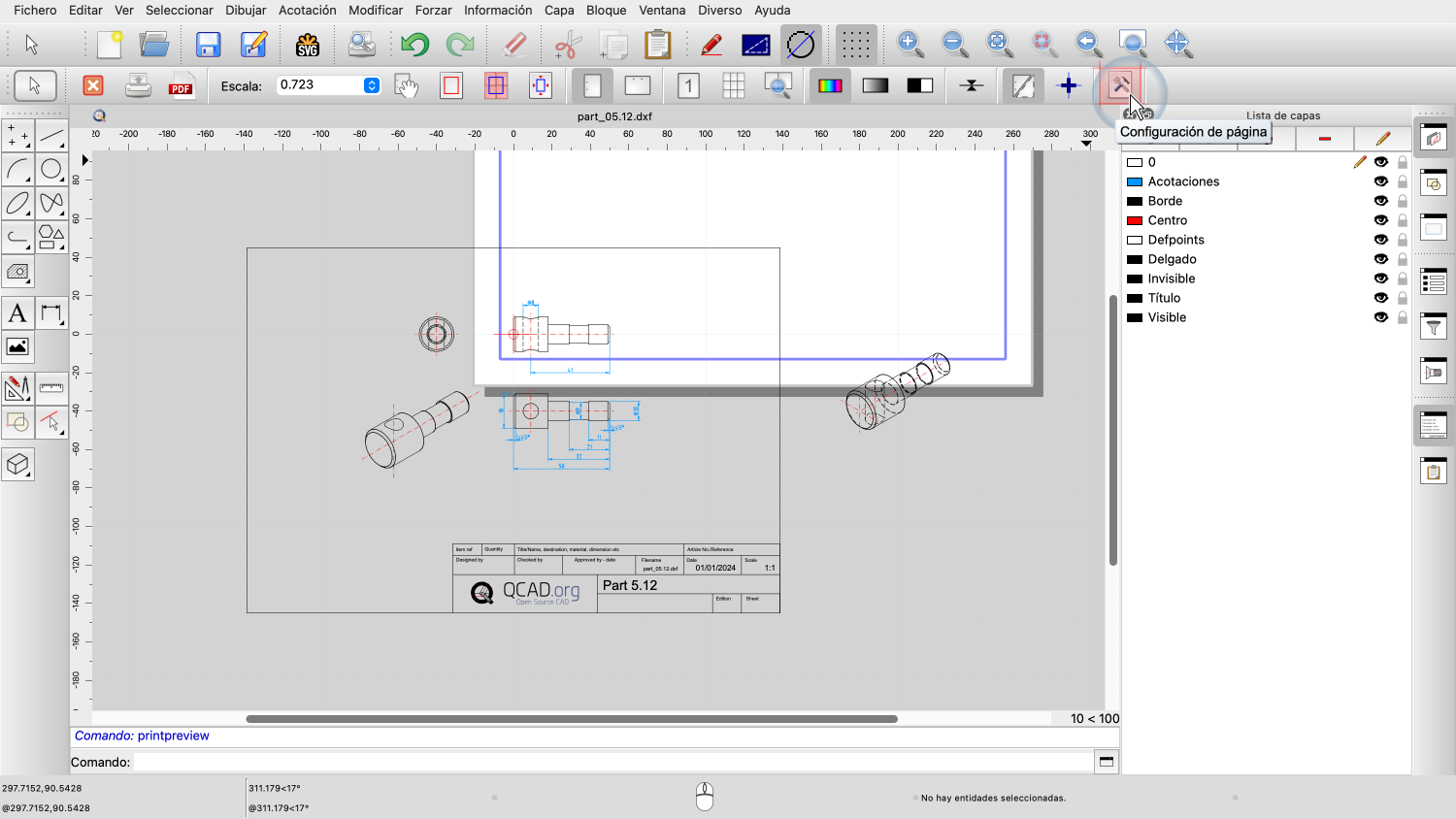 Todo lo que hicimos fue decirle a QCAD cómo queremos escalar y posicionar el dibujo en el papel para la impresión.