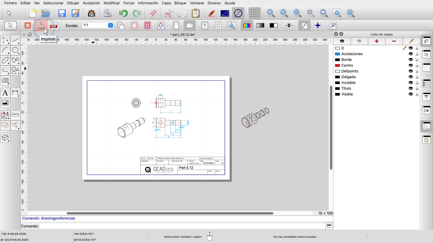 En este tutorial de QCAD, vamos a imprimir un dibujo.