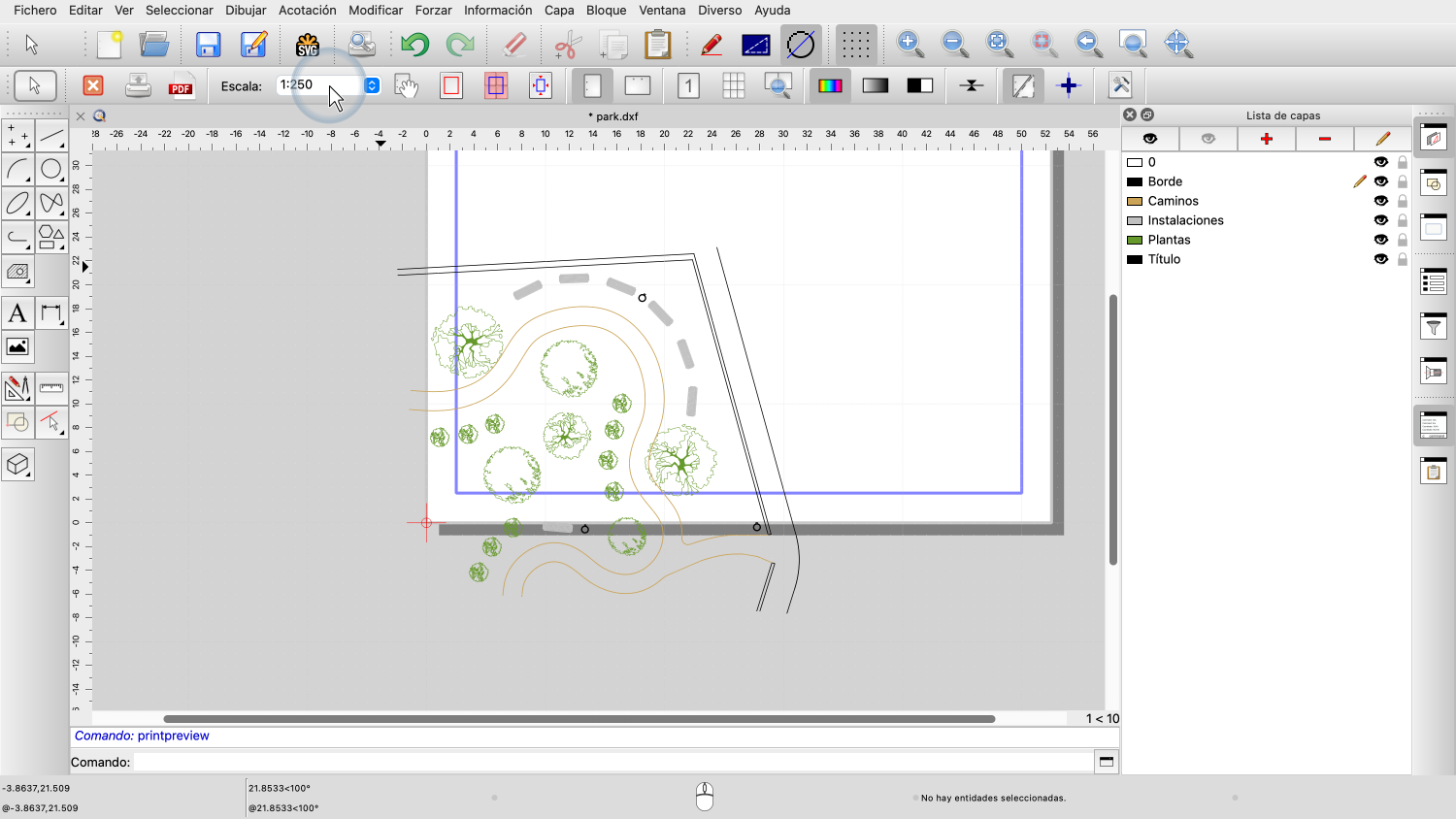 Podemos introducir un factor de escala de 1 para imprimir nuestro dibujo en su tamaño real.