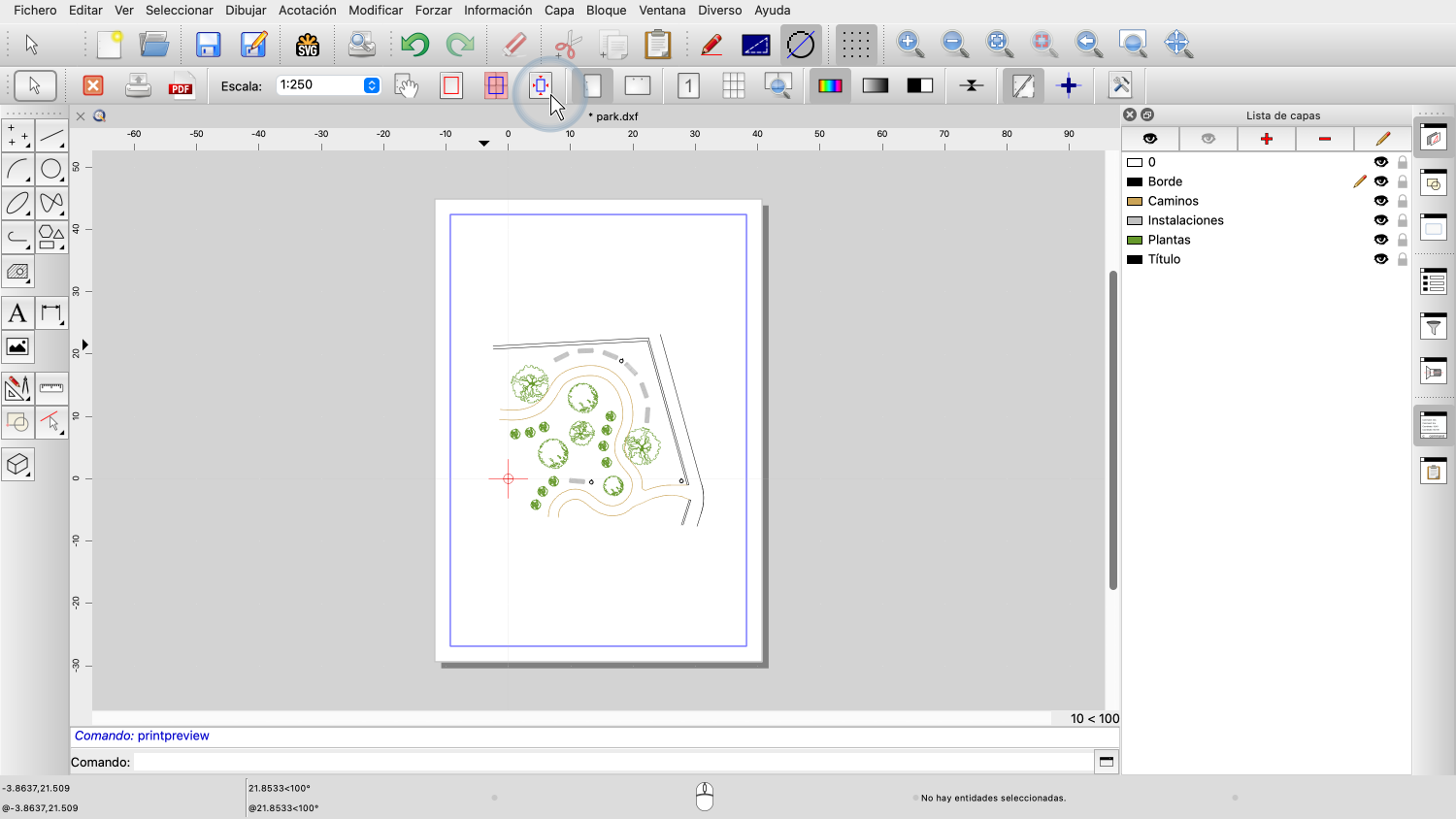 Para preparar nuestro dibujo para la impresión, primero pasamos a la vista previa de impresión.