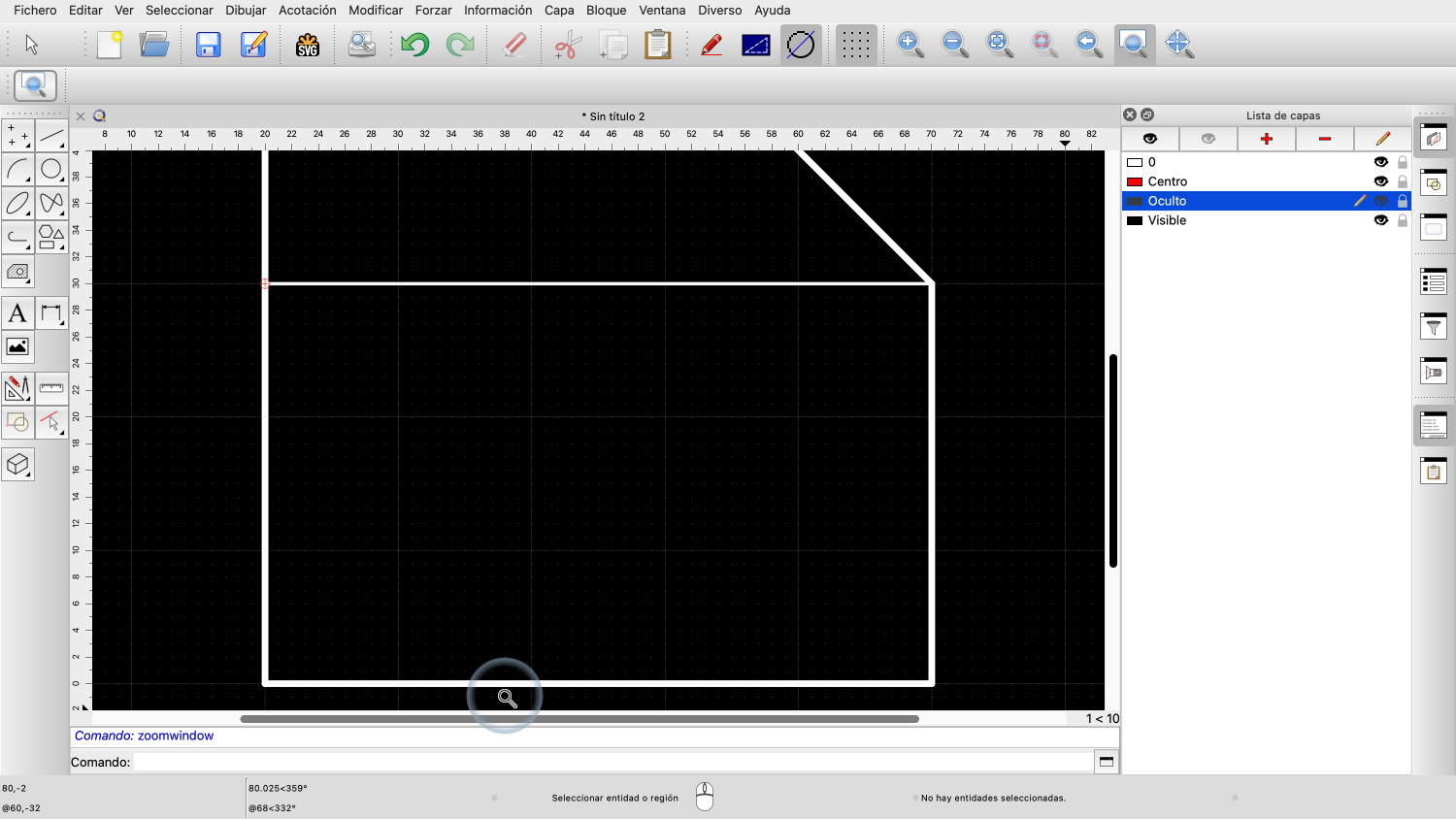 Como se recomienda generalmente, dejamos la capa 0 vacía y creamos nuestras propias capas para nuestro dibujo.