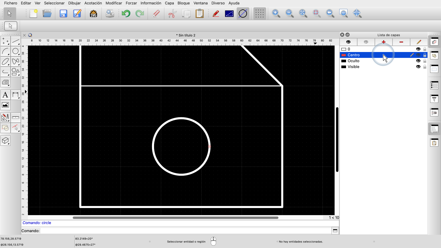 Por último, añadimos una capa para las líneas centrales de los círculos de nuestro dibujo.