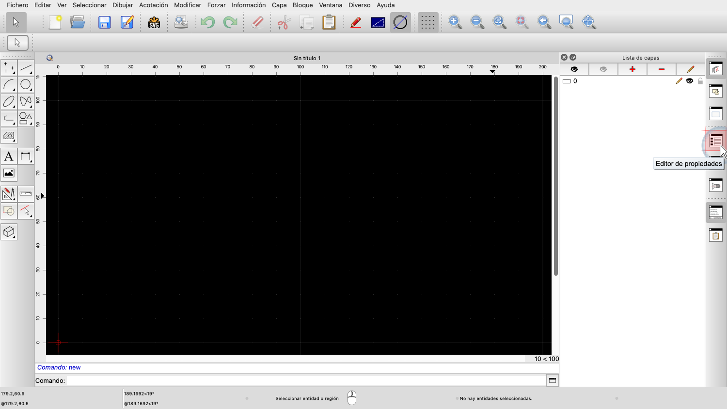 Antes de poder utilizar el editor de propiedades, nuestro dibujo debe tener al menos una entidad seleccionada.