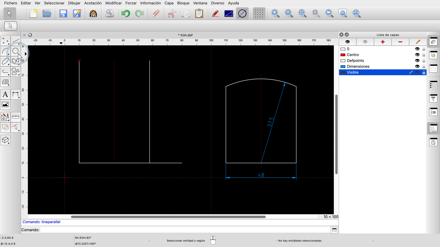 Al hacer una selección, le decimos a QCAD con qué entidades debe trabajar.