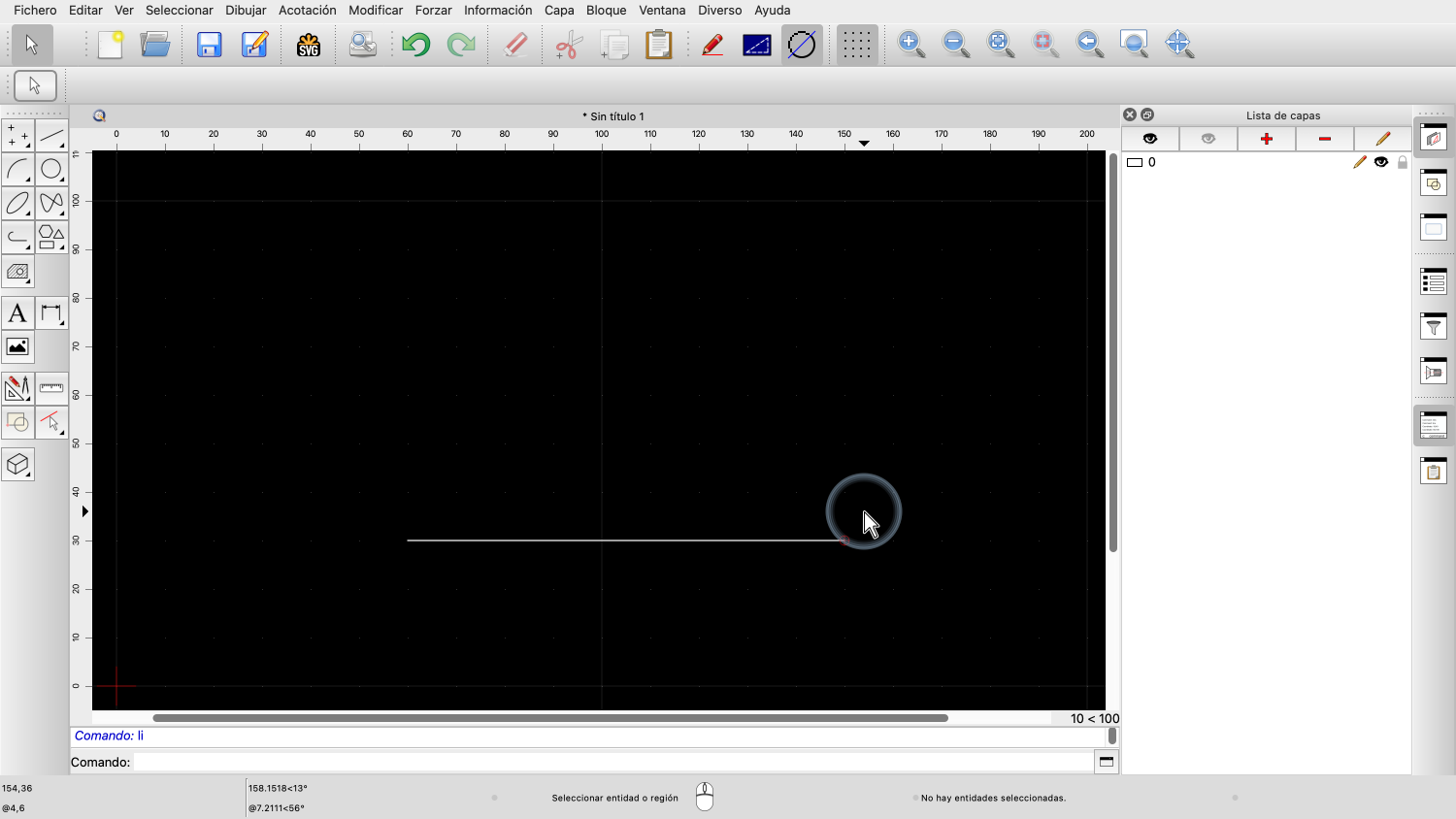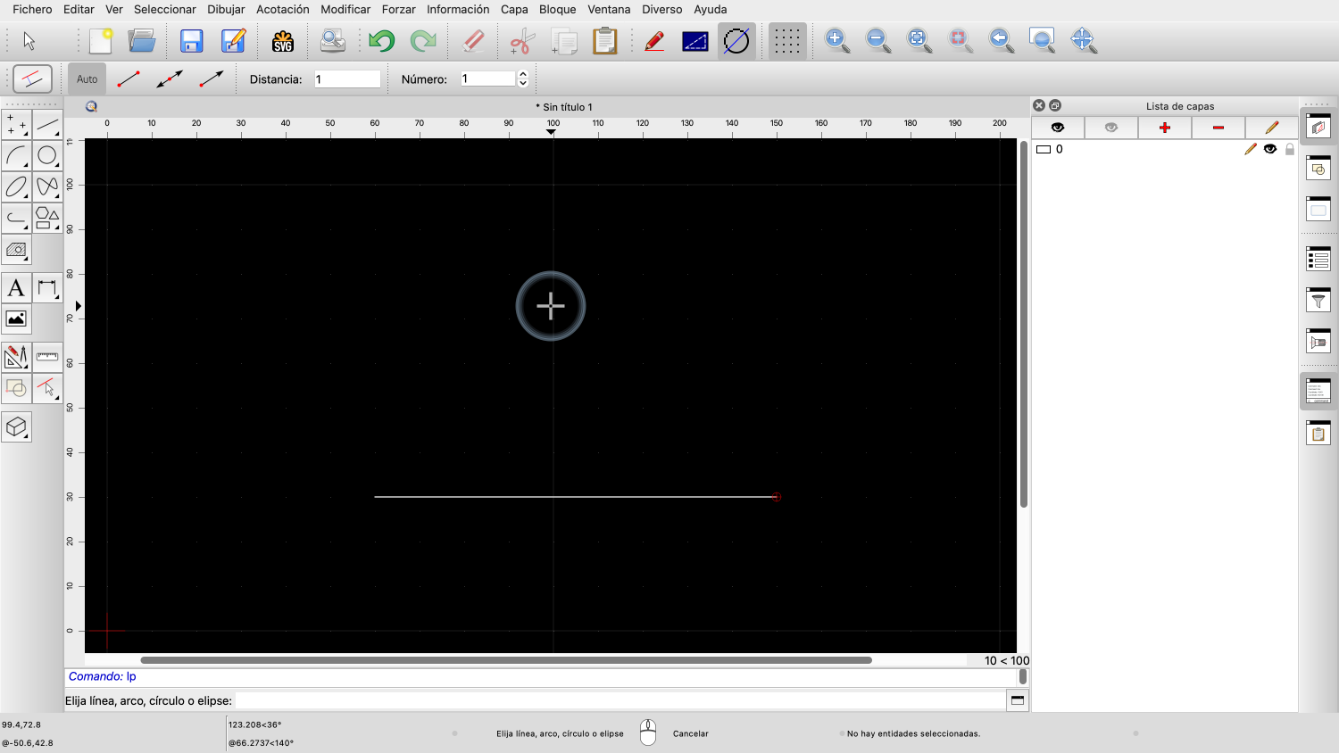 Volvemos a echar un vistazo a la herramienta de líneas, ya que suele ser una de las más utilizadas en QCAD.