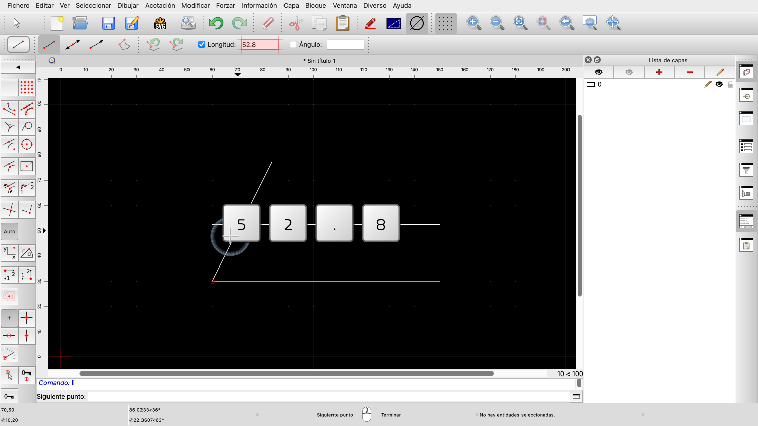 Para este ejemplo, queremos dibujar una línea con una longitud de 52,8 unidades de dibujo.