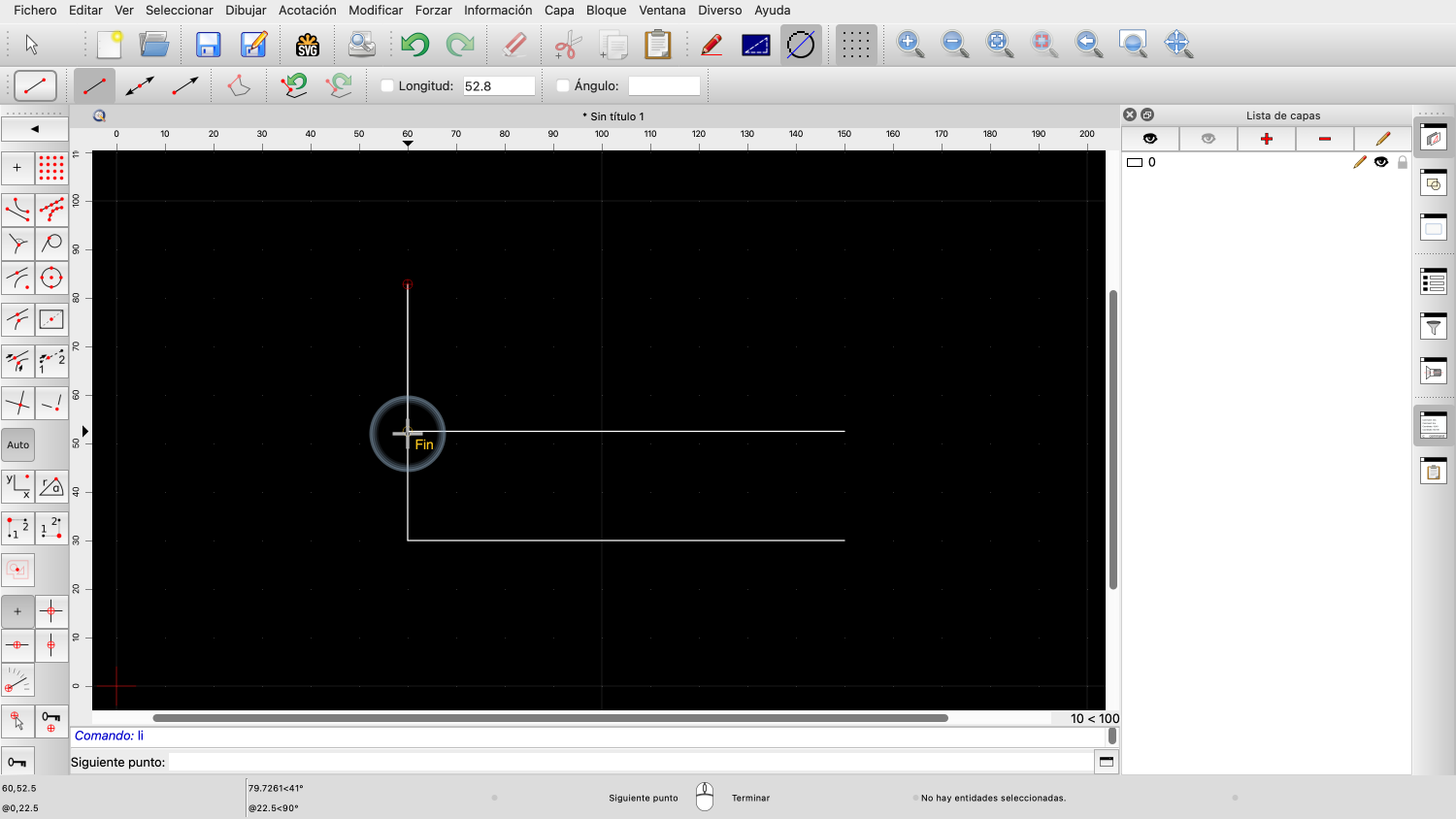 Una vez fijado el ángulo, podemos definir la longitud de la línea con el ratón.