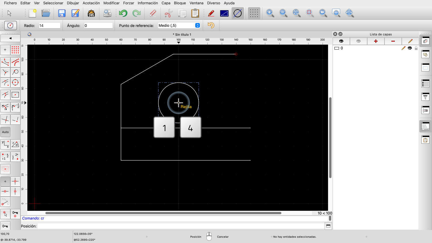 A continuación, introducimos el radio del círculo de 14.
