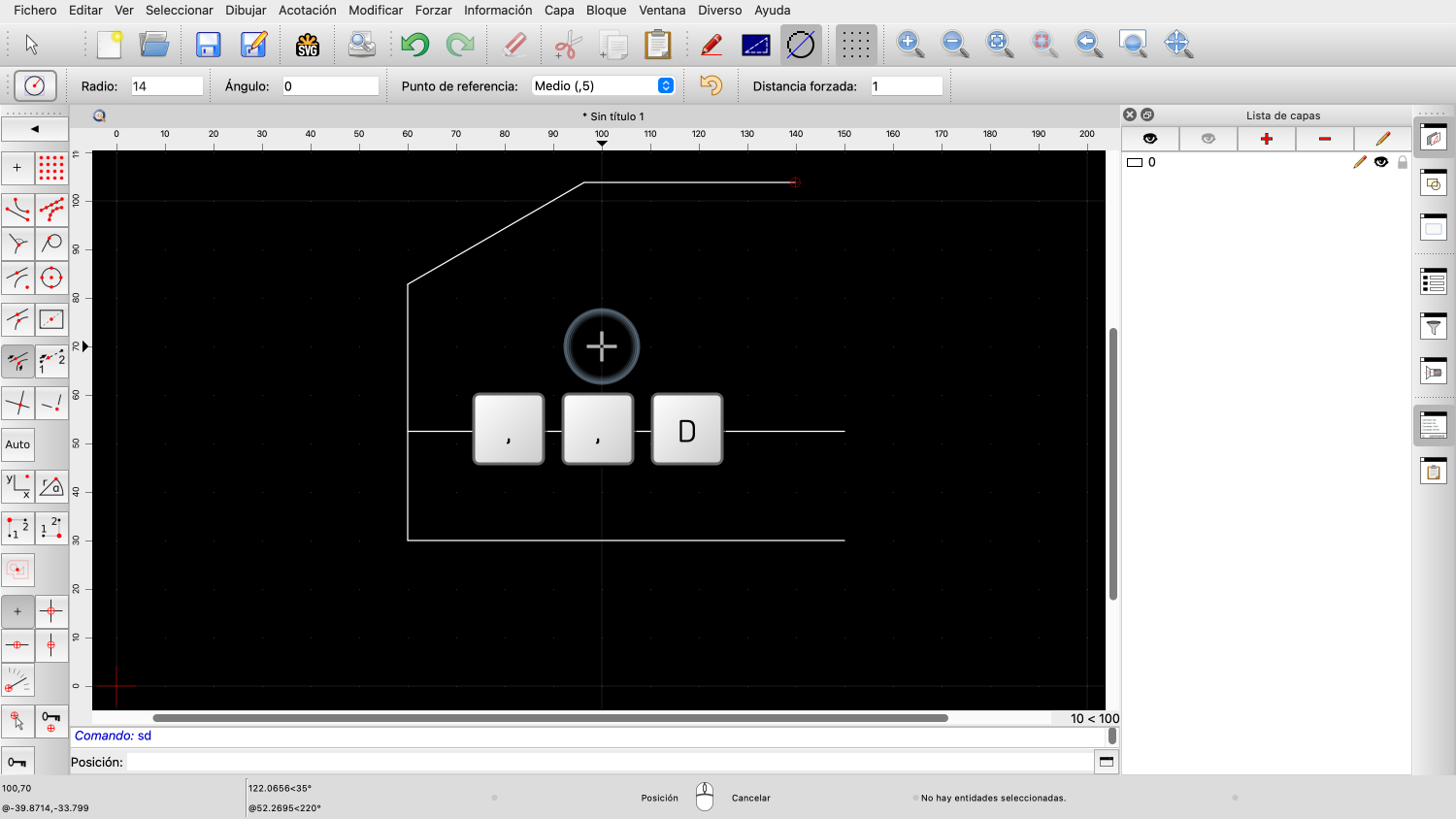 Basta con pulsar las teclas de nuestro teclado para que QCAD inicie la herramienta.