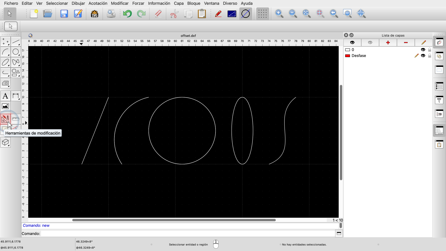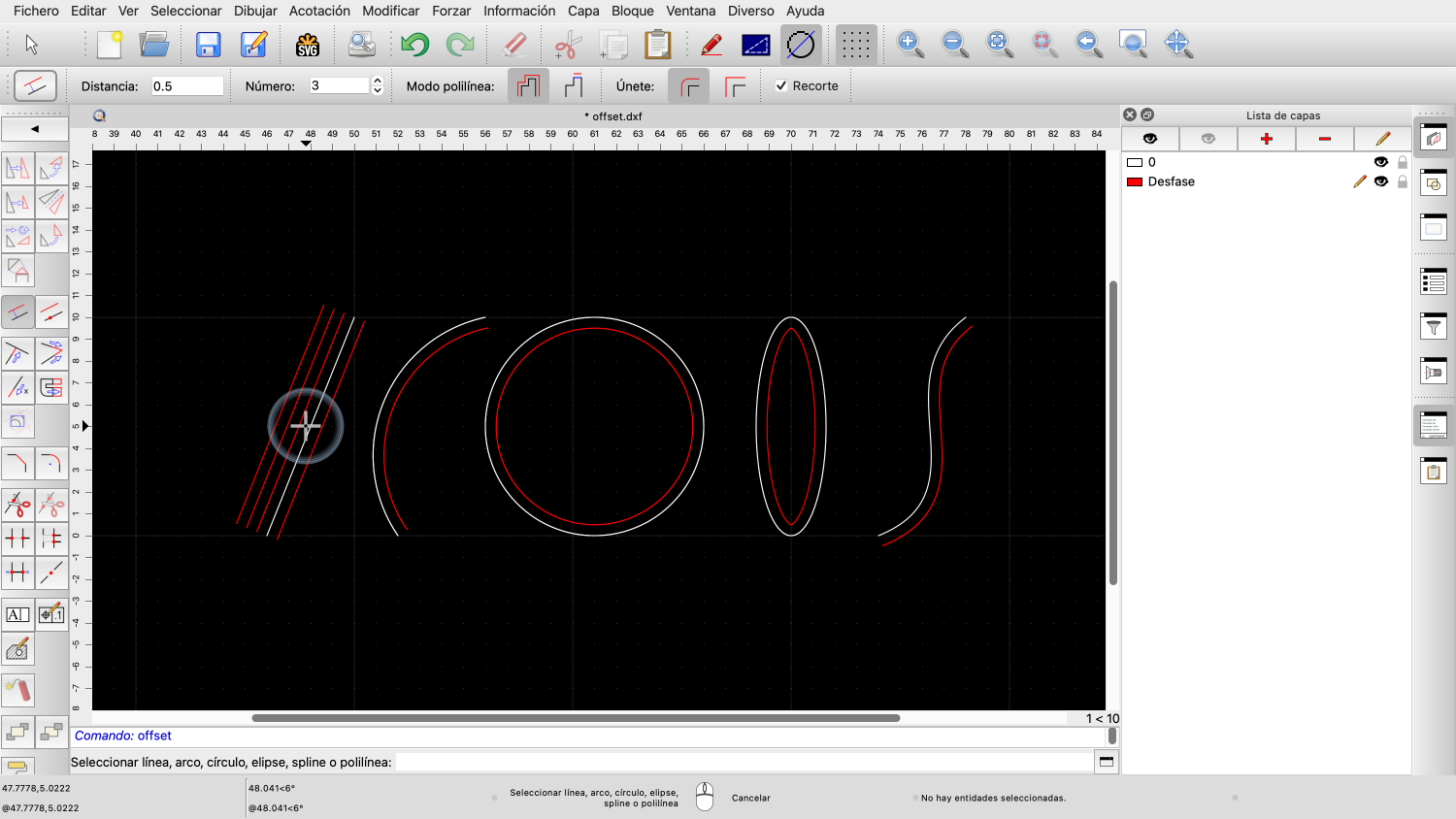 Aprenderemos a desfasar entidades individuales como líneas, arcos, círculos, elipses o splines.