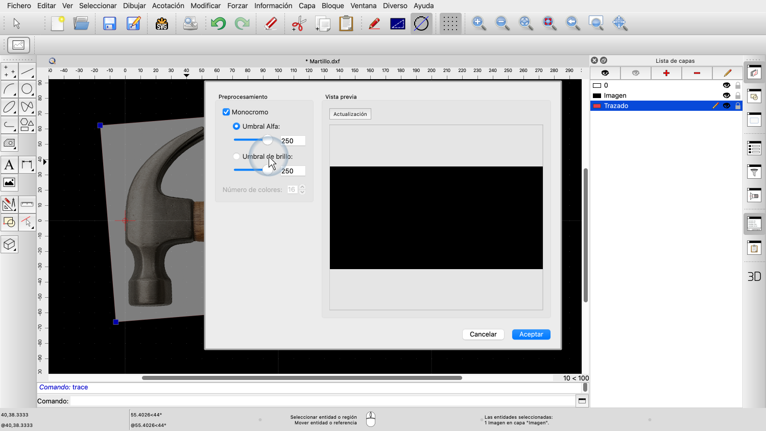 Hacemos clic en Aceptar para confirmar y trazar la imagen en nuestro dibujo.