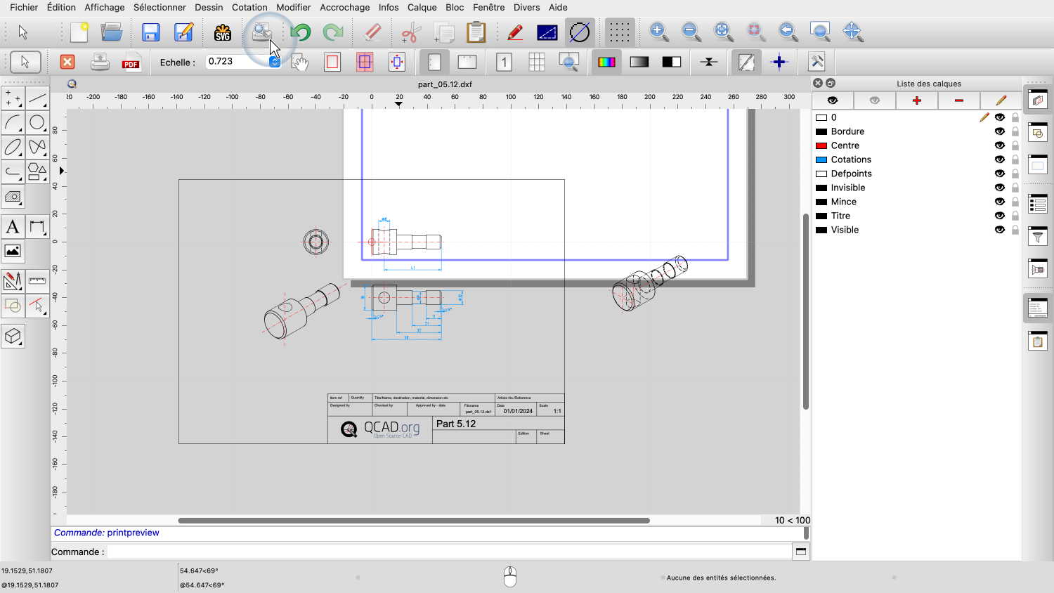 Dans ce tutoriel QCAD, nous allons imprimer un dessin.