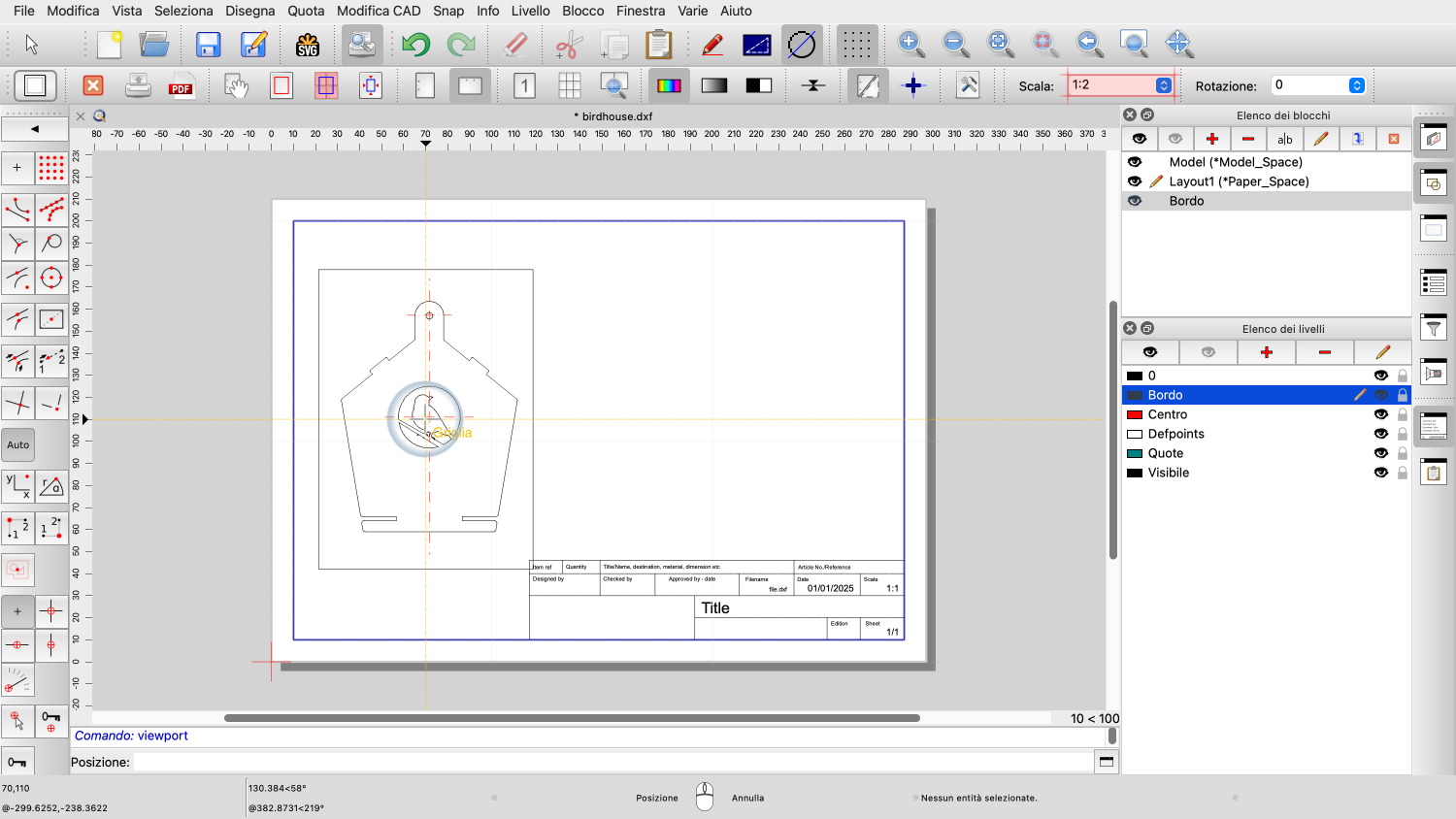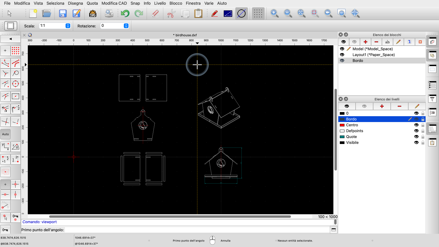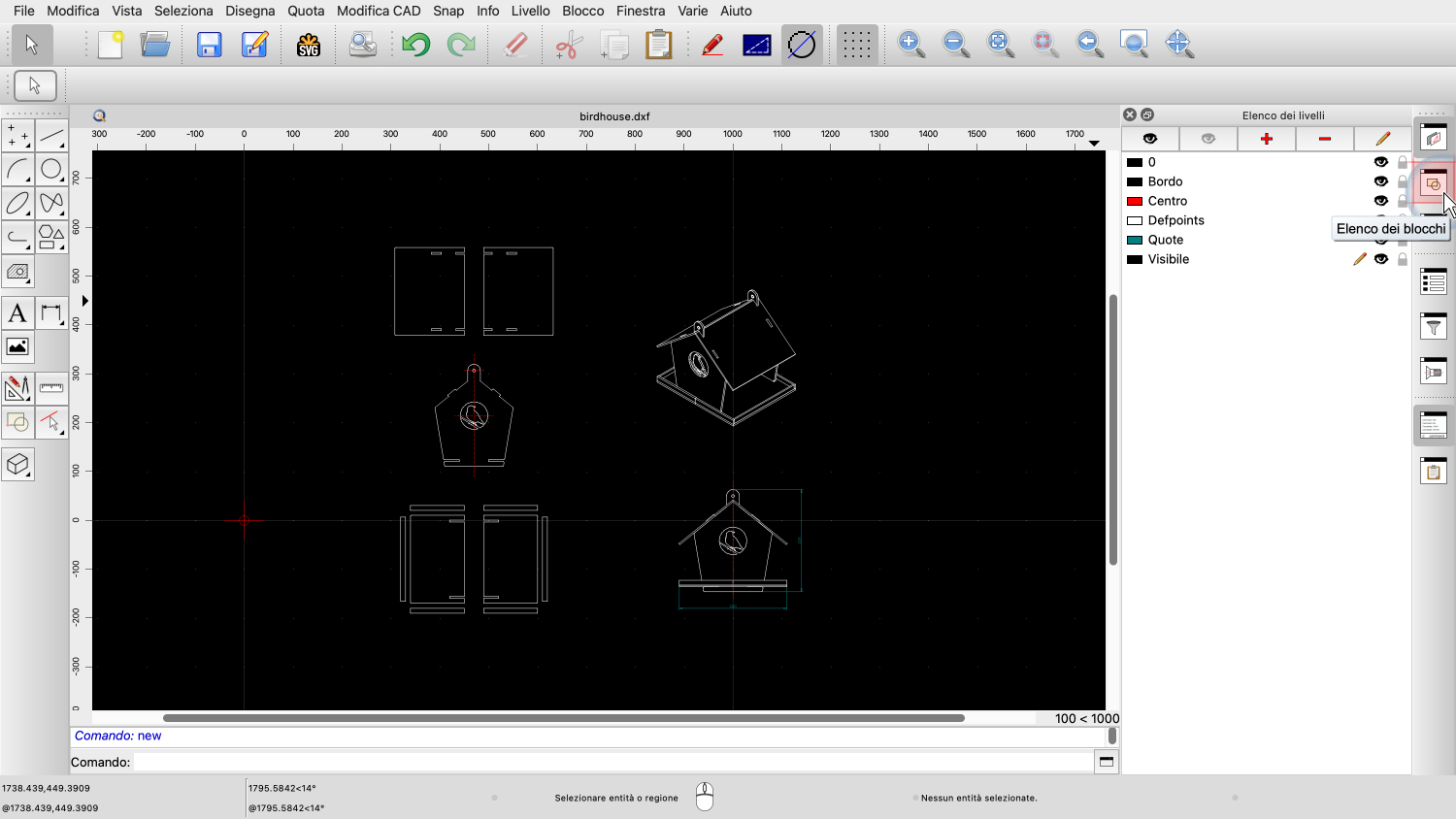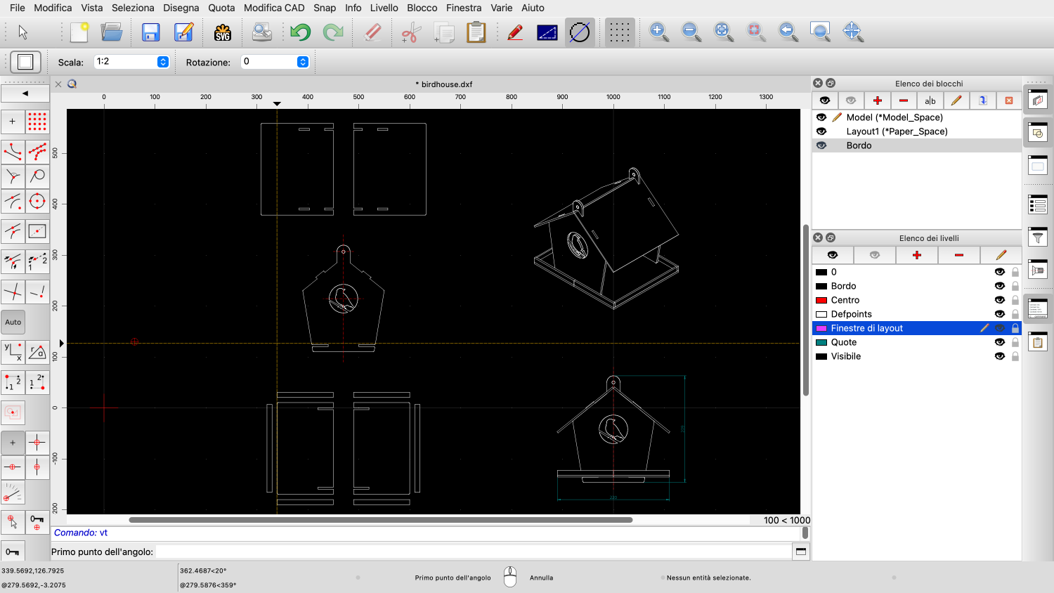 Esempio di disegno: birdhouse.dxf