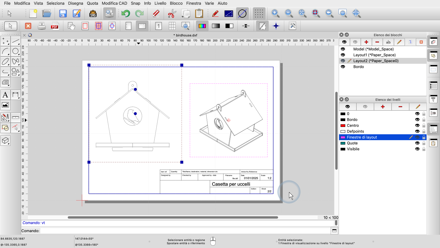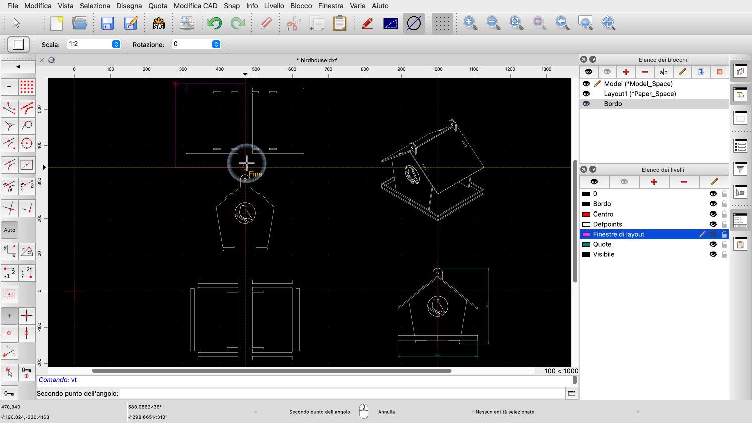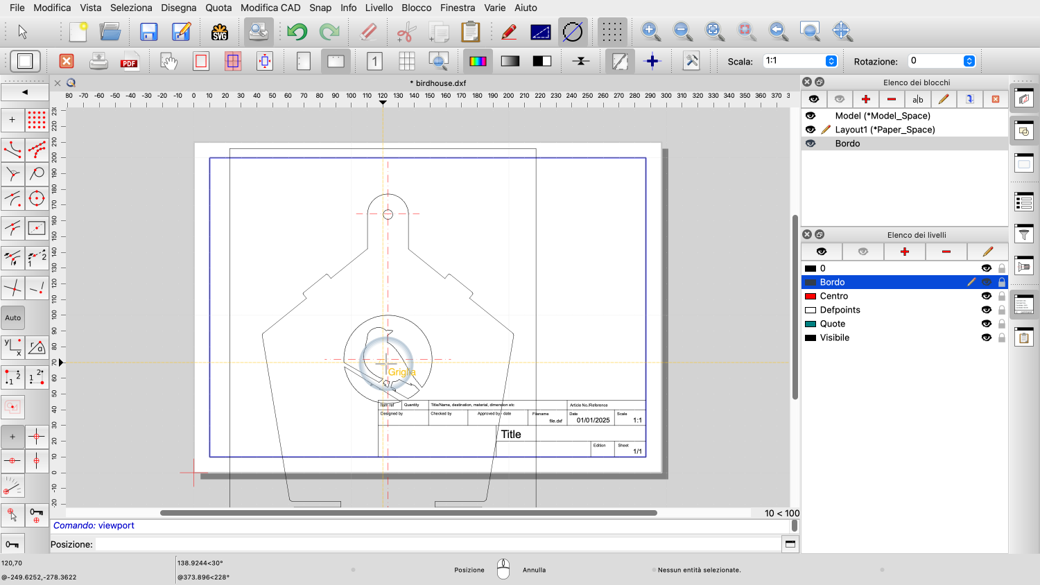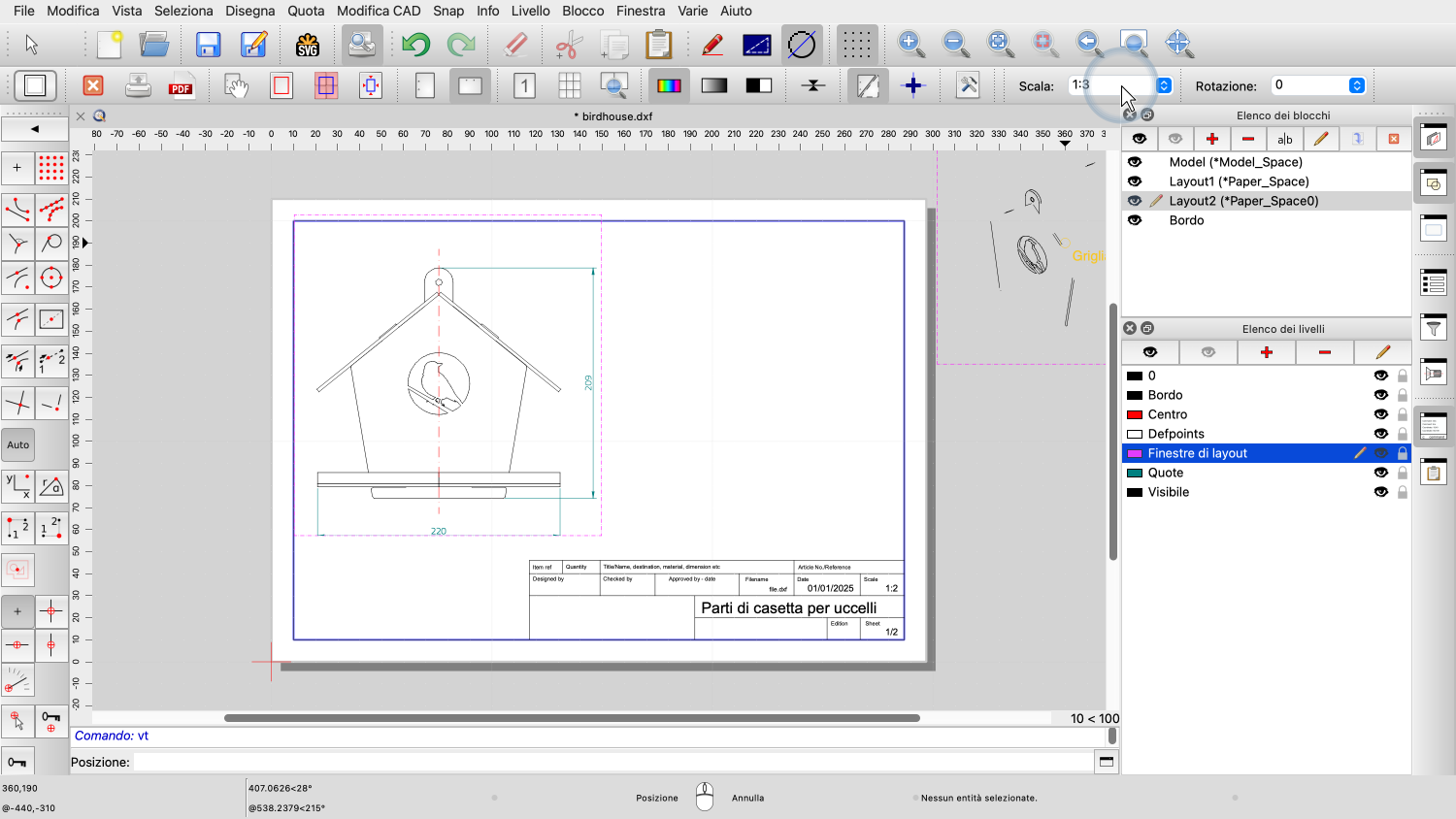 Esempio di disegno: birdhouse.dxf