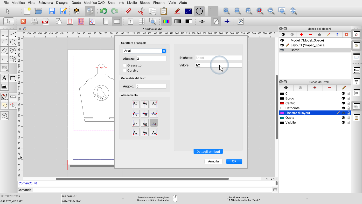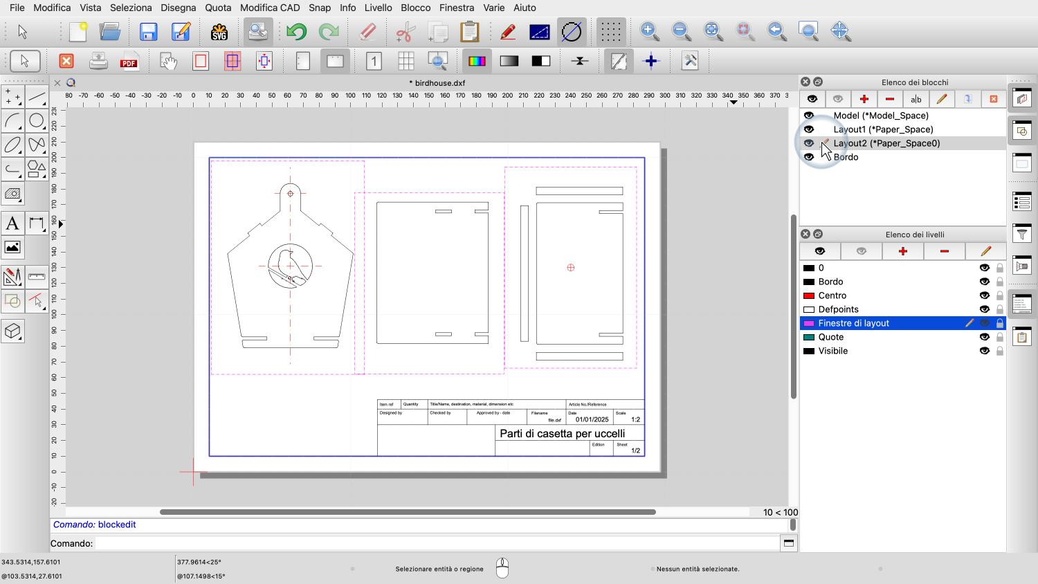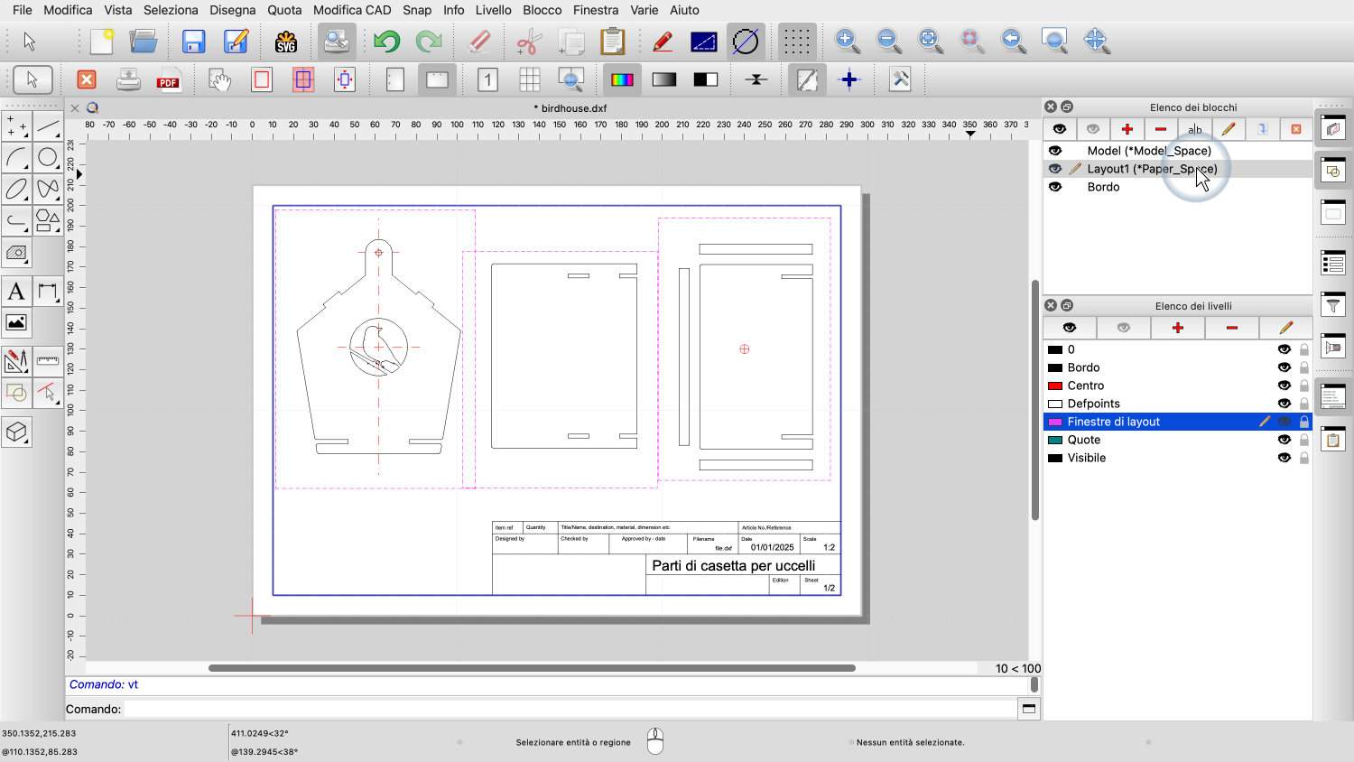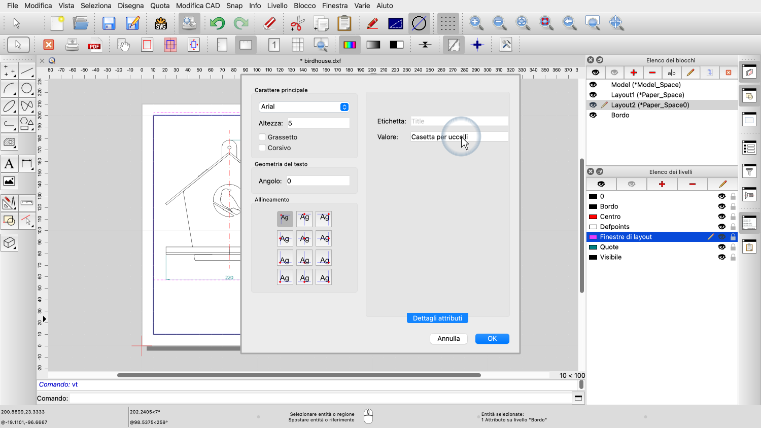 Esempio di disegno: birdhouse.dxf
