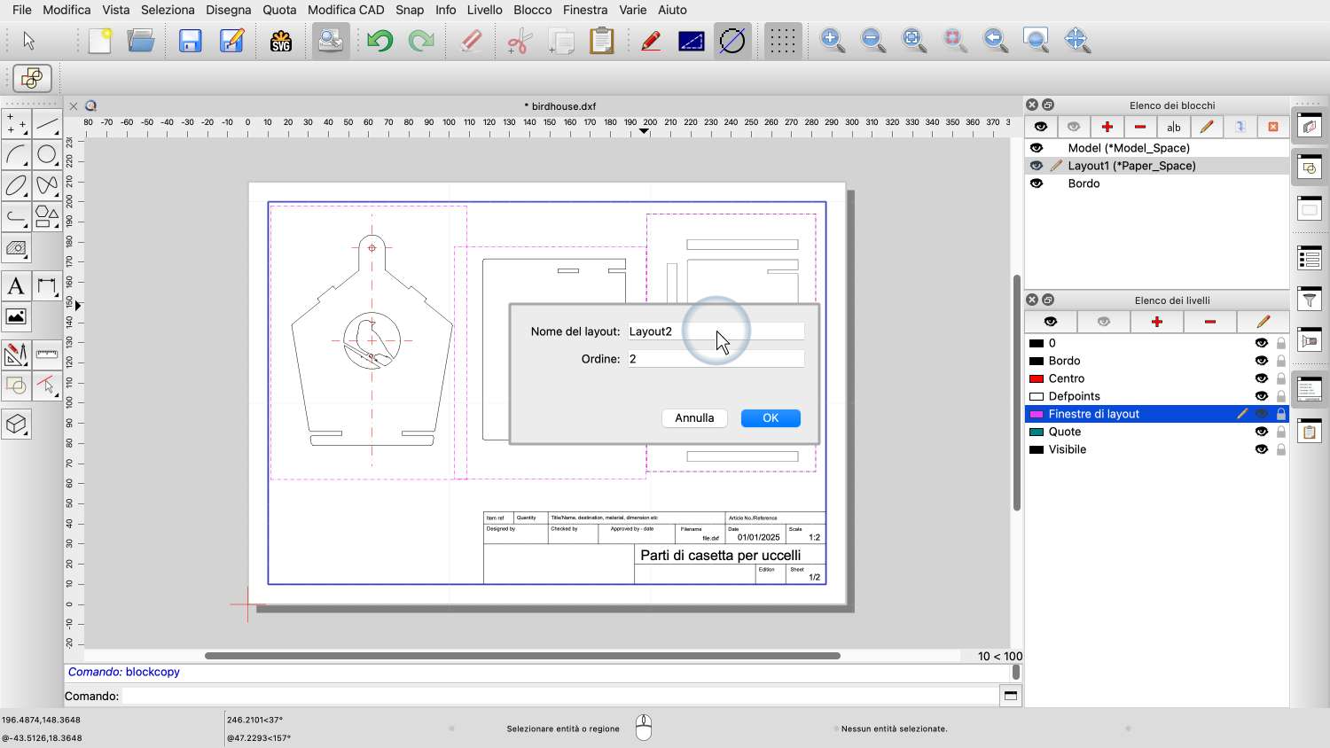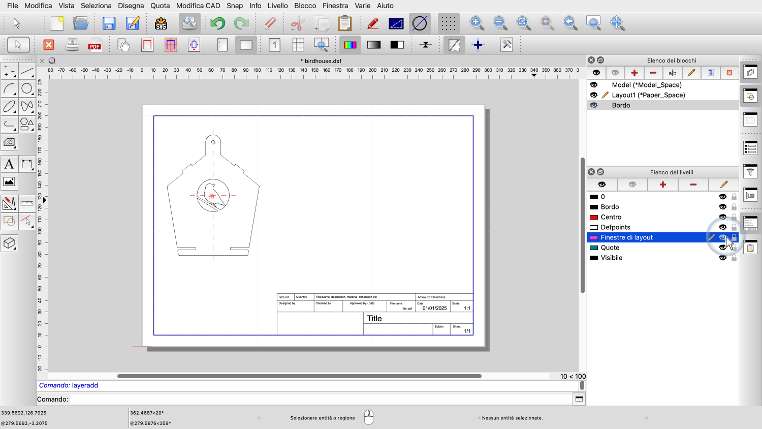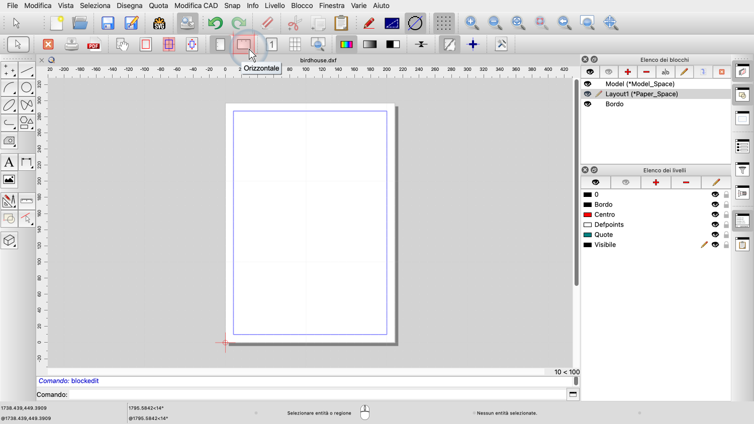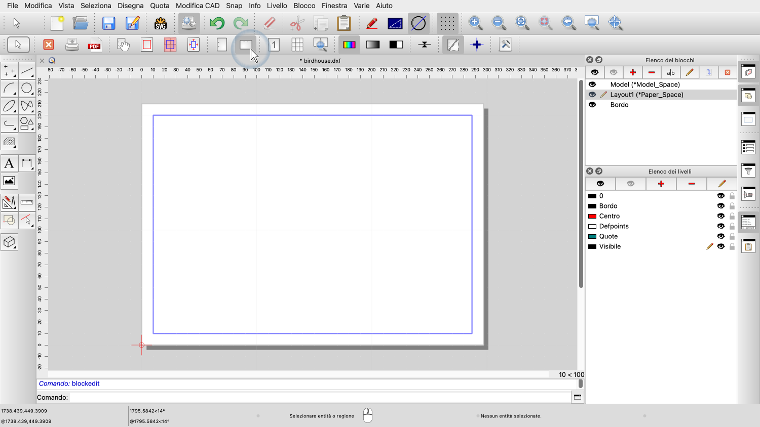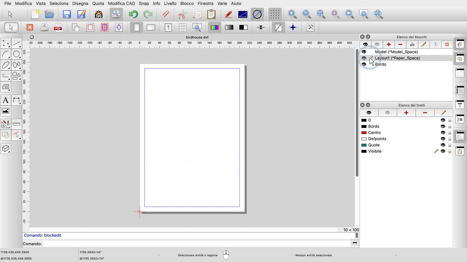 I nuovi disegni creati con QCAD contengono già un blocco di layout.