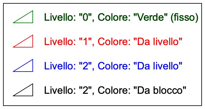 • Il primo triangolo e testo in alto si trovano sul livello "0".